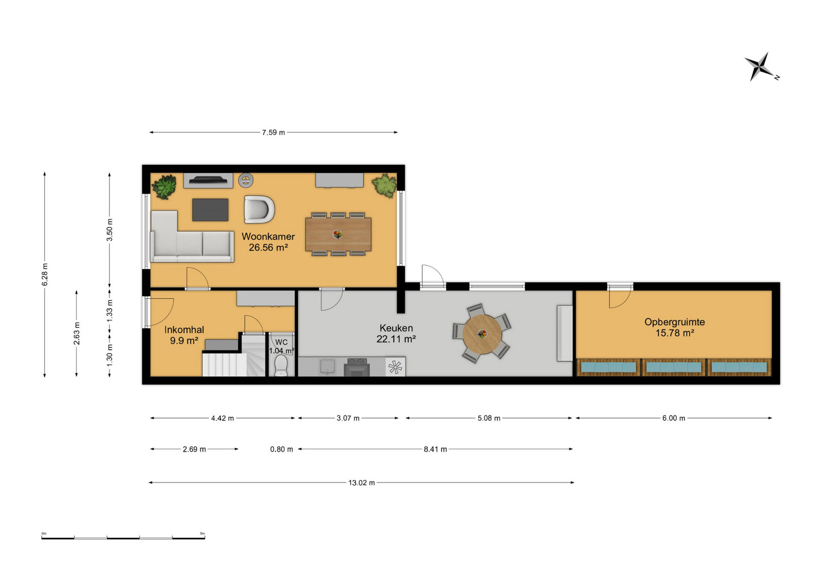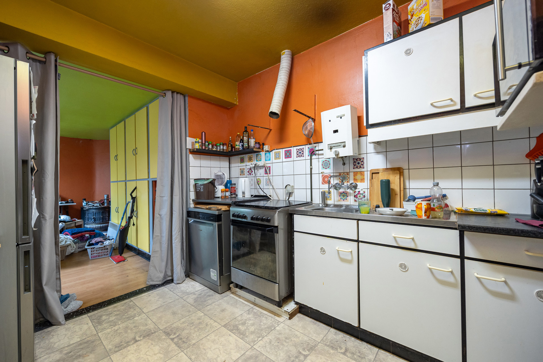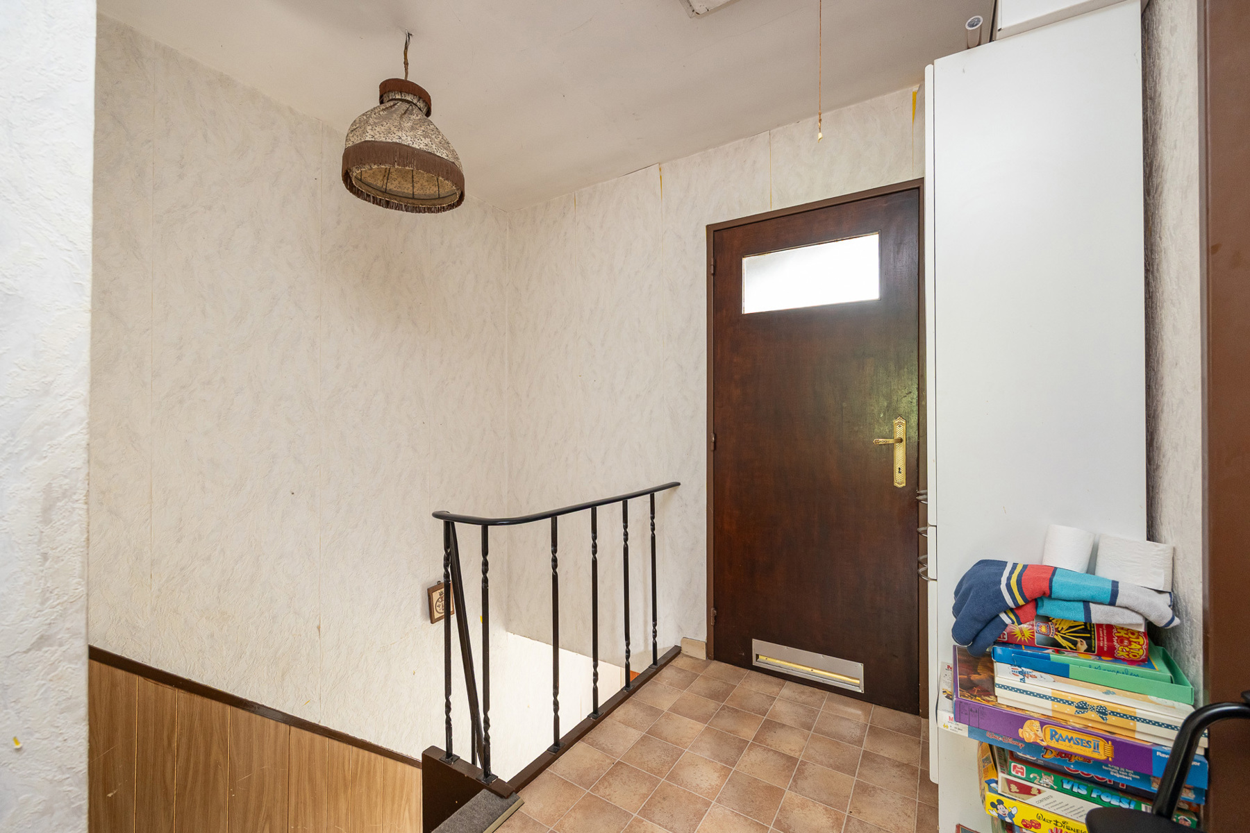 Bij het betreden van de woning kom je in de inkomhal die toegang biedt tot de leefruimte en de keuken. De keuken grenst aan een aanpalende ruimte met uitbreidingsmogelijkheden, ideaal voor wie droomt van een ruime open keuken. Op het gelijkvloers bevindt zich verder nog een apart toilet.