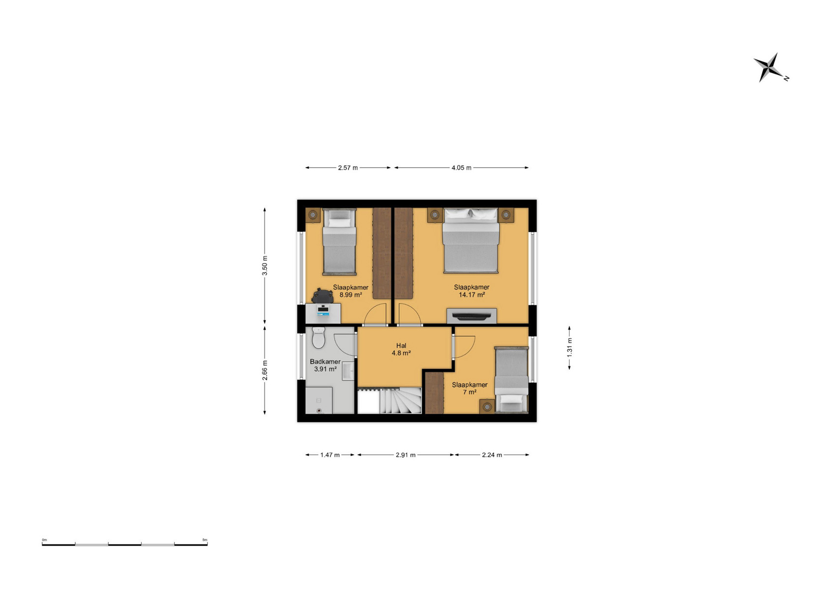 Op de bovenverdieping vind je 3 volwaardige slaapkamers en een badkamer met douche. De zolderruimte biedt extra bergruimte.