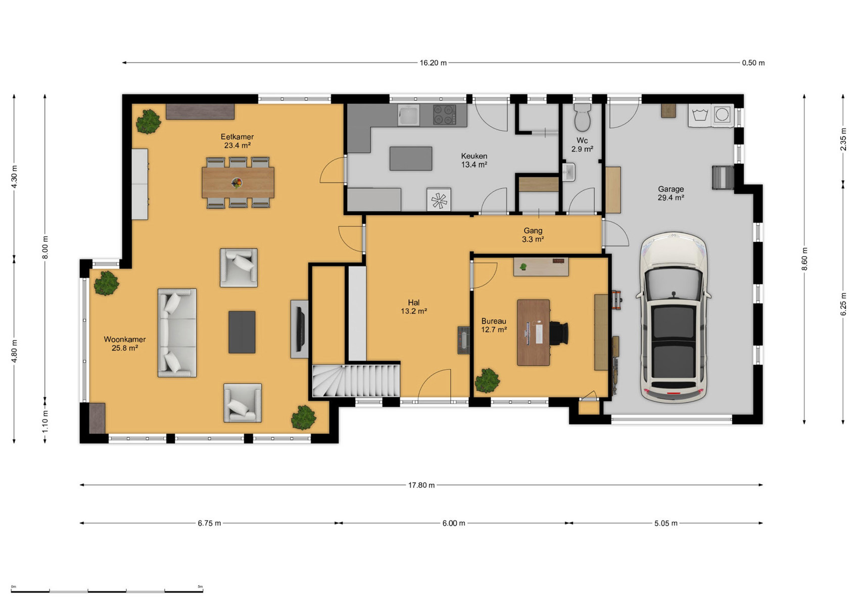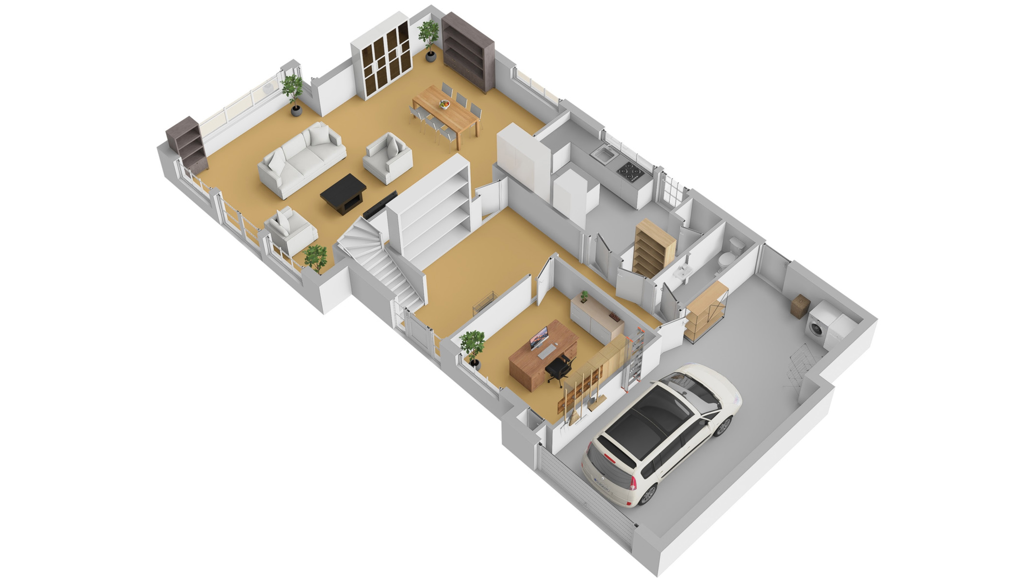 Op de benedenverdieping betreed je de woning via de ruime inkomhal die toegang geeft tot de ruime leefruimte, die grenst aan een praktische keuken. Verder is er een ruime bureauruimte , ideaal voor thuiswerken of vrij beroep. De inpandige garage biedt voldoende ruimte voor je voertuigen of opslag.