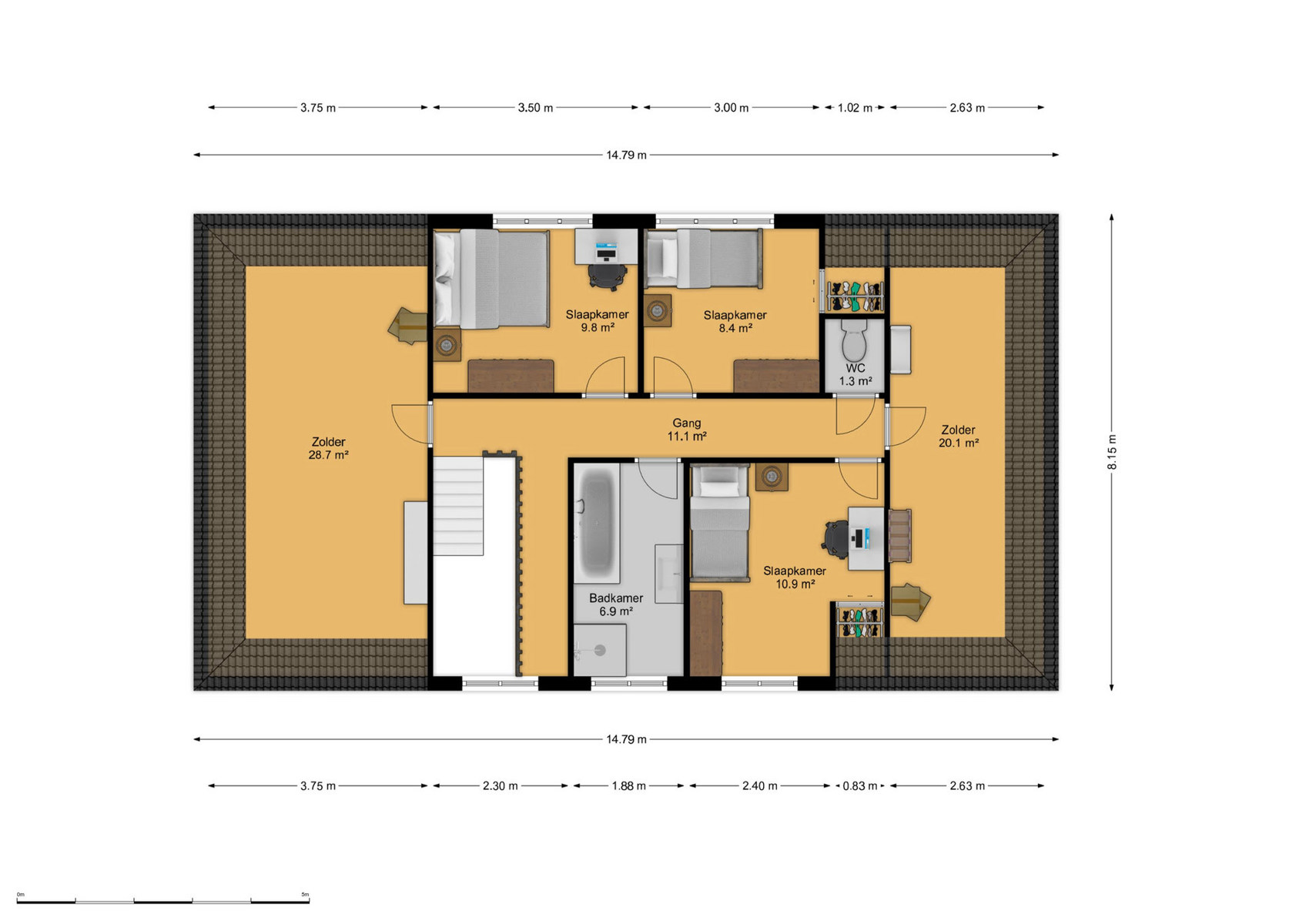 Op de eerste verdieping bevinden zich drie ruime slaapkamers, een badkamer, apart toilet en een zolderkamer die tal van mogelijkheden biedt, bijvoorbeeld als extra slaapkamer, hobbyruimte of kantoor.