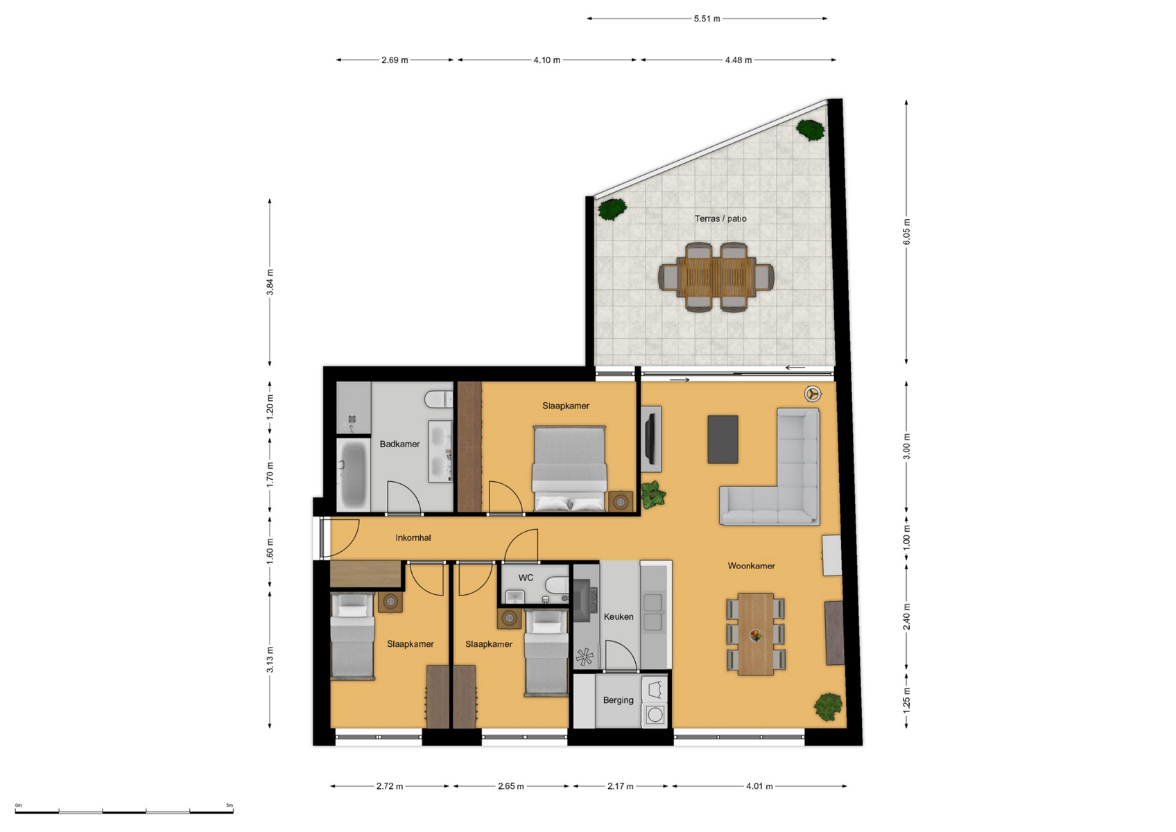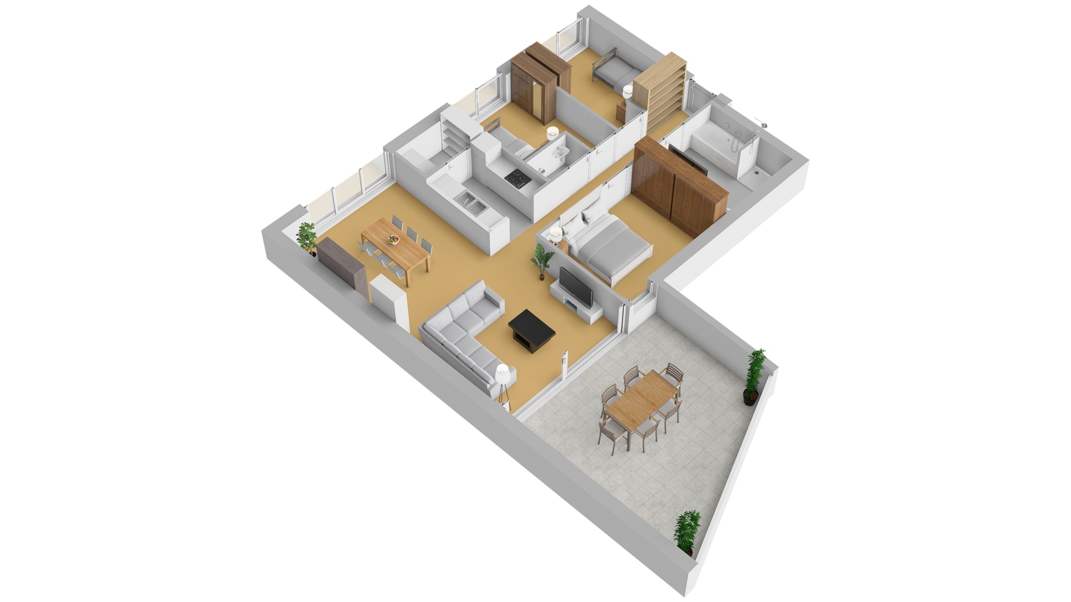 Moderne patiowoning met 3 slaapkamers en zonnige privé patio
