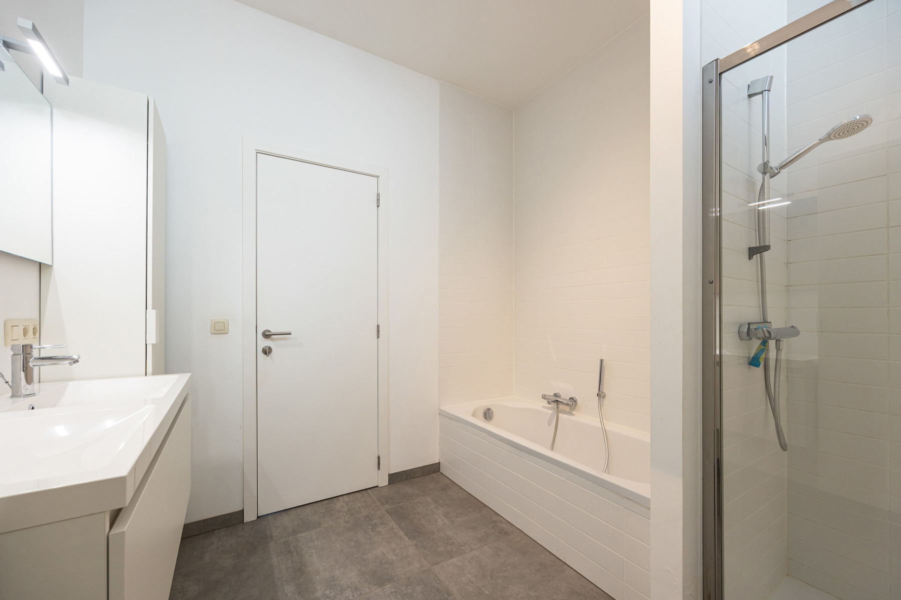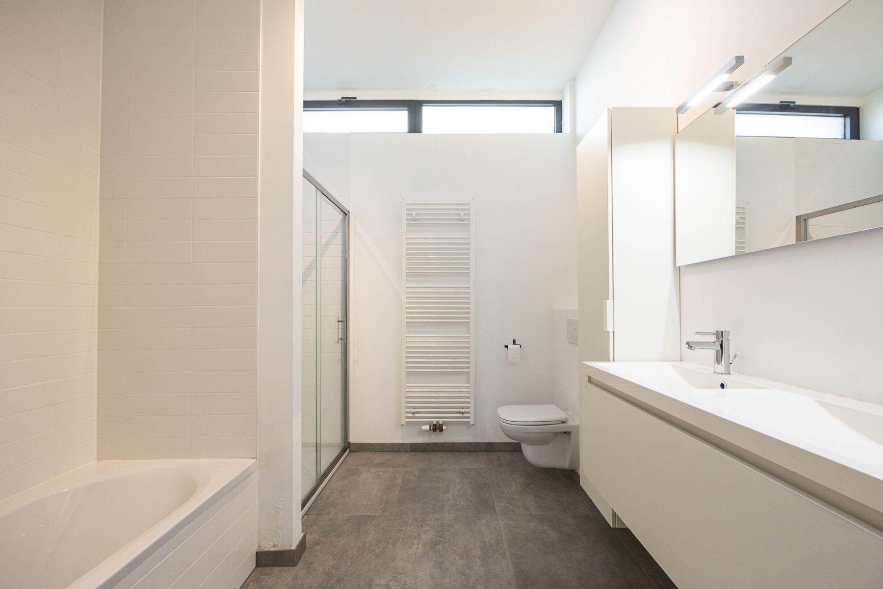 De woning beschikt over drie ruime slaapkamers, eveneens op parket, een aparte hal met gastentoilet en een moderne badkamer uitgerust met een toilet, lavabo, ligbad en douche.