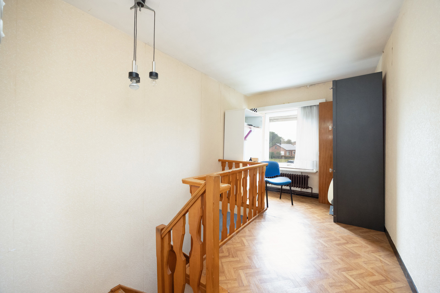 De woning beschikt over een bewoonbare oppervlakte van 170m² en een logische indeling. Op het gelijkvloers treft u een inkomhal die uitgeeft op een gezellige leef- en eetruimte met aangename lichtinval. Verder zijn er een keuken, badkamer en praktische opbergruimte aanwezig. Vanuit hier is zowel de kelder bereikbaar als de trap naar de bovenverdieping. Op de eerste verdieping bevindt zich een ruime nachthal die toegang biedt tot drie volwaardige slaapkamers en de kruipzolder. De droge kelder zorgt voor extra bergruimte.