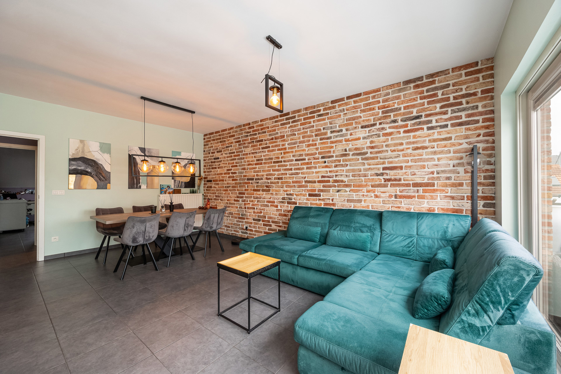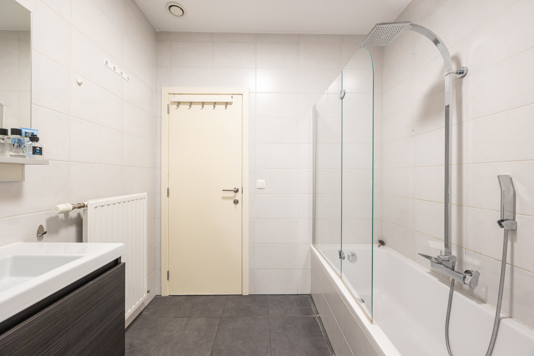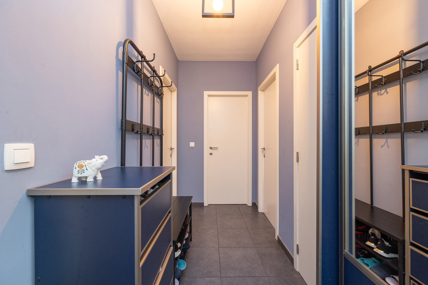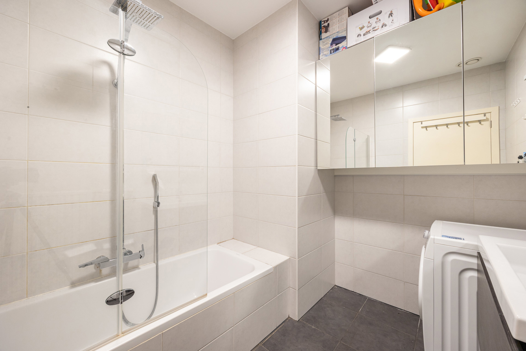 Het appartement heeft een bewoonbare oppervlakte van 77 m² en biedt een aangename en praktische indeling. Via de inkomhal kom je in de lichtrijke leefruimte met open keuken, waar grote raampartijen zorgen voor veel natuurlijk licht en een open sfeer. Vanuit de woonkamer heb je directe toegang tot een gezellig terras (met automatische zonneluifel), ideaal voor een rustig moment in de buitenlucht. Verder leidt de hal naar twee comfortabele slaapkamers, een badkamer met ligbad/douche, lavabo en een apart toilet. Tot slot beschikt het appartement over een private autostaanplaats en aparte kelderberging in de ondergrondse parkeergarage, wat zorgt voor extra gemak in het dagelijks leven. Deze autostaanplaats en kelderberging zijn verplicht mee aan te kopen voor €30.000,00 (niet inbegrepen in de vraagprijs).