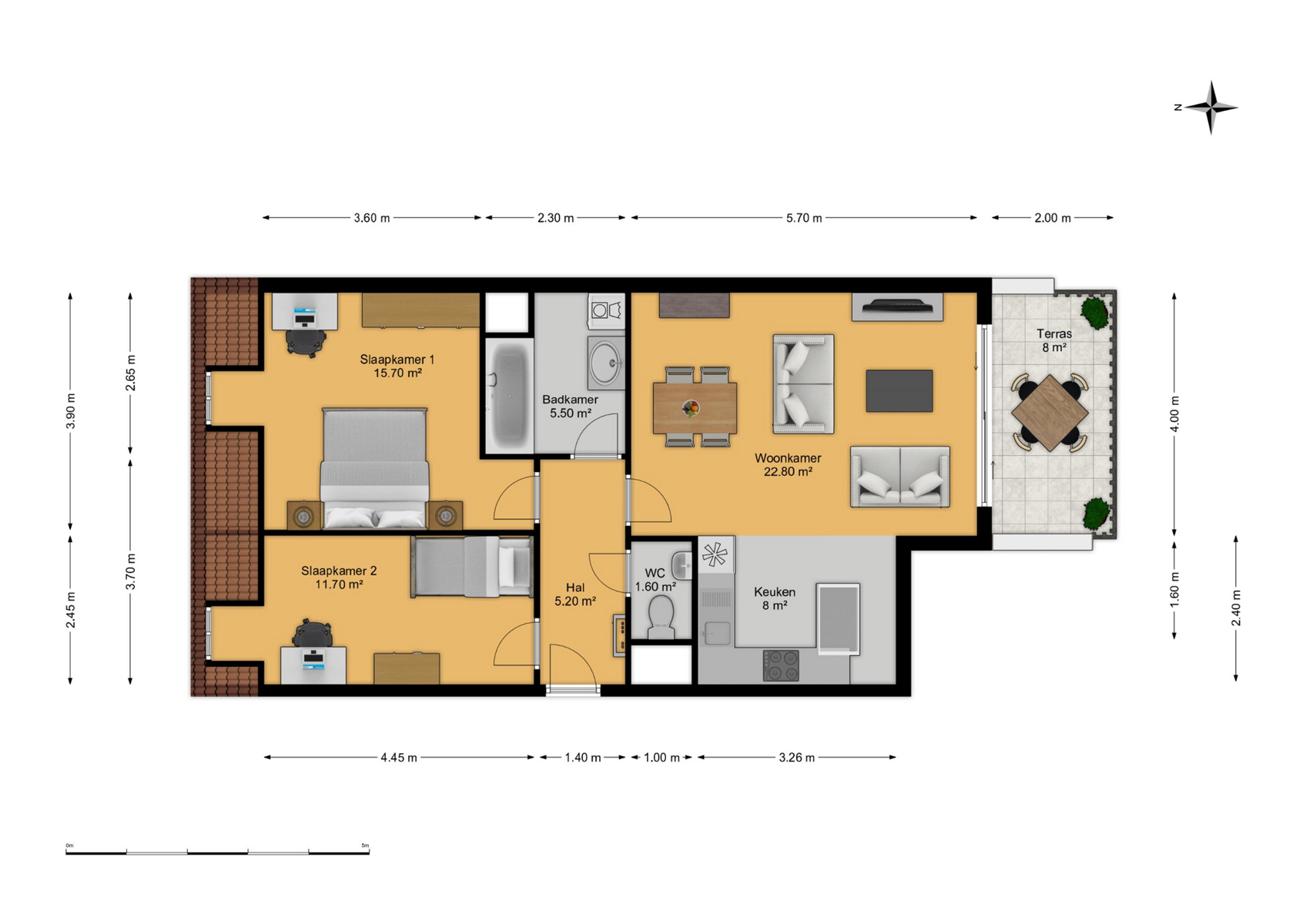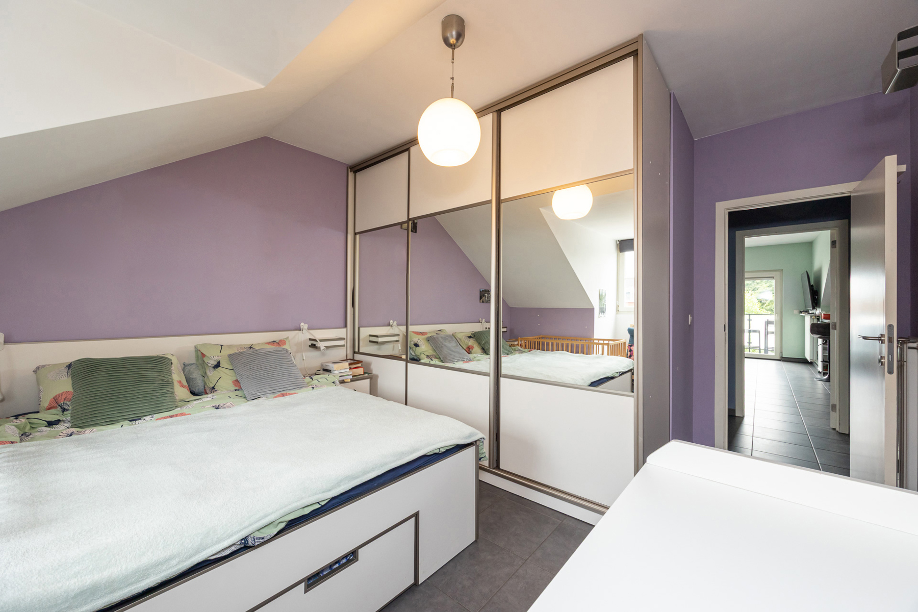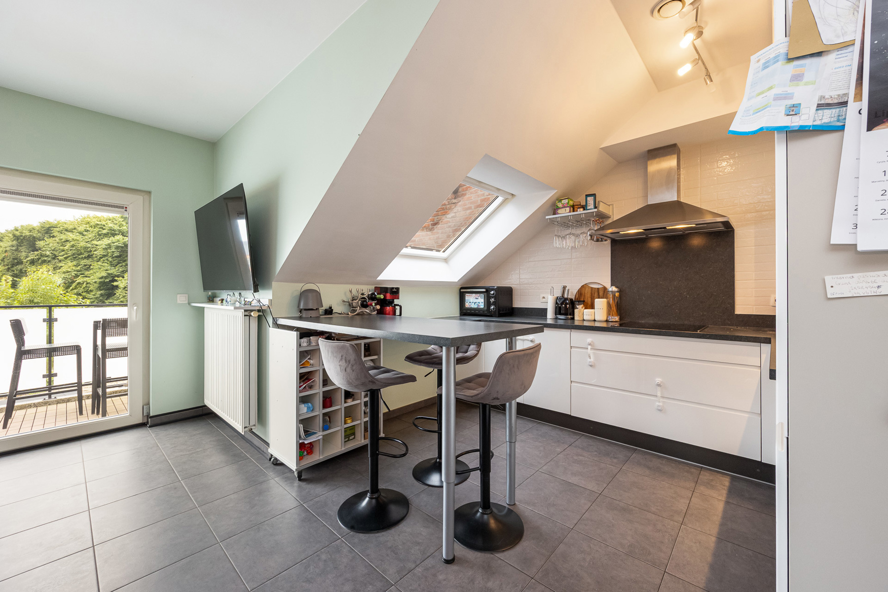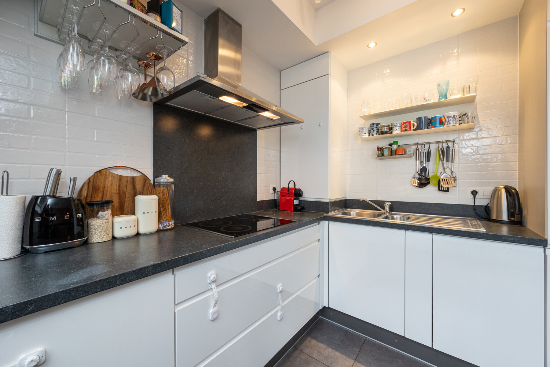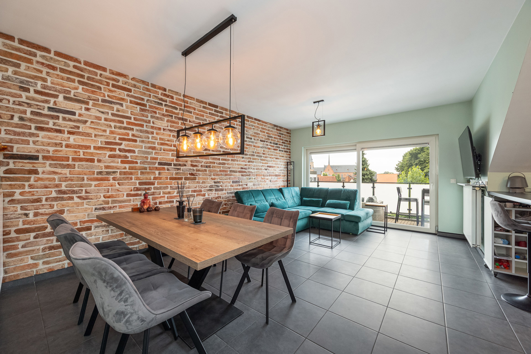 Het appartement heeft een bewoonbare oppervlakte van 77 m² en biedt een aangename en praktische indeling. Via de inkomhal kom je in de lichtrijke leefruimte met open keuken, waar grote raampartijen zorgen voor veel natuurlijk licht en een open sfeer. Vanuit de woonkamer heb je directe toegang tot een gezellig terras (met automatische zonneluifel), ideaal voor een rustig moment in de buitenlucht. Verder leidt de hal naar twee comfortabele slaapkamers, een badkamer met ligbad/douche, lavabo en een apart toilet. Tot slot beschikt het appartement over een private autostaanplaats en aparte kelderberging in de ondergrondse parkeergarage, wat zorgt voor extra gemak in het dagelijks leven. Deze autostaanplaats en kelderberging zijn verplicht mee aan te kopen voor €30.000,00 (niet inbegrepen in de vraagprijs).