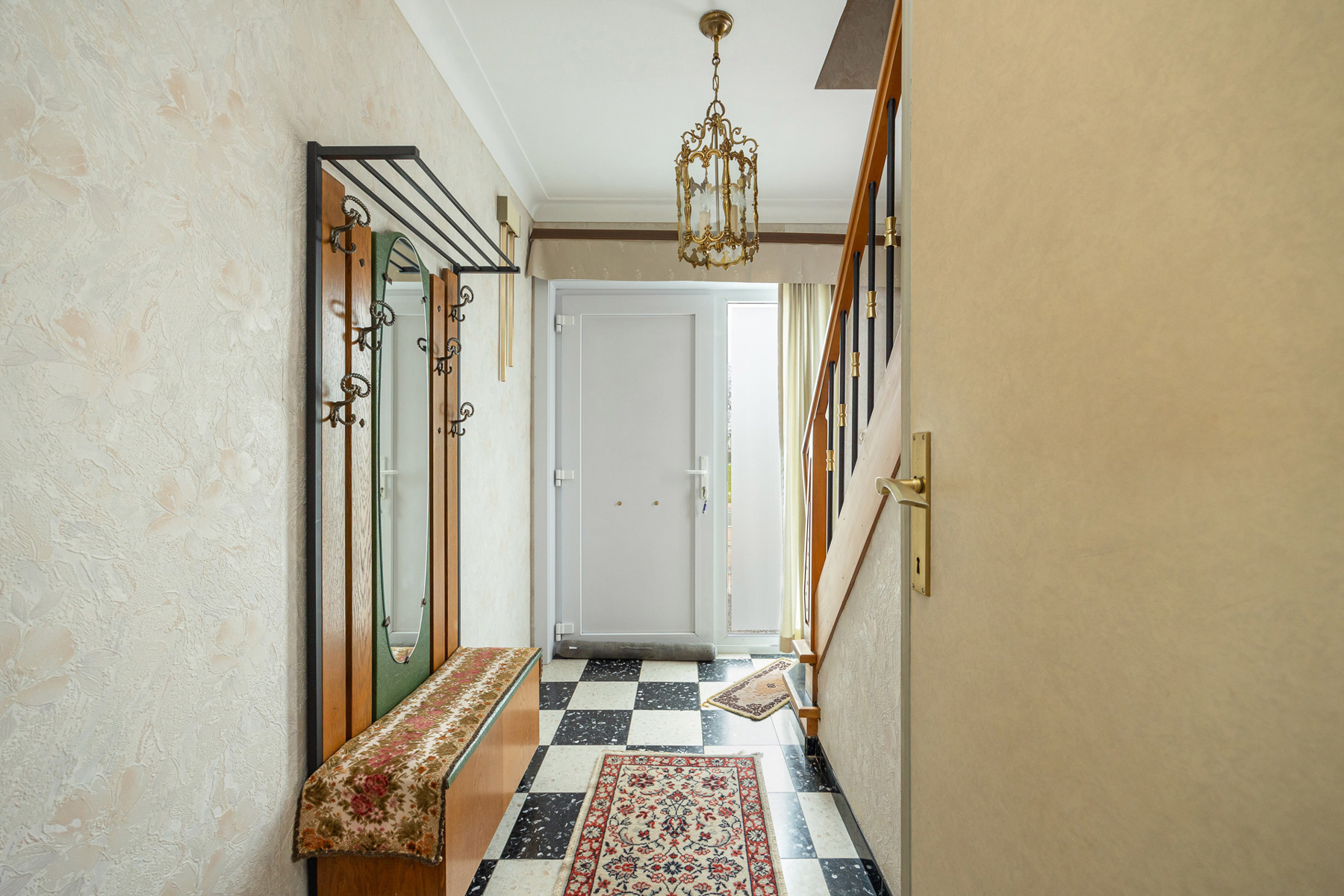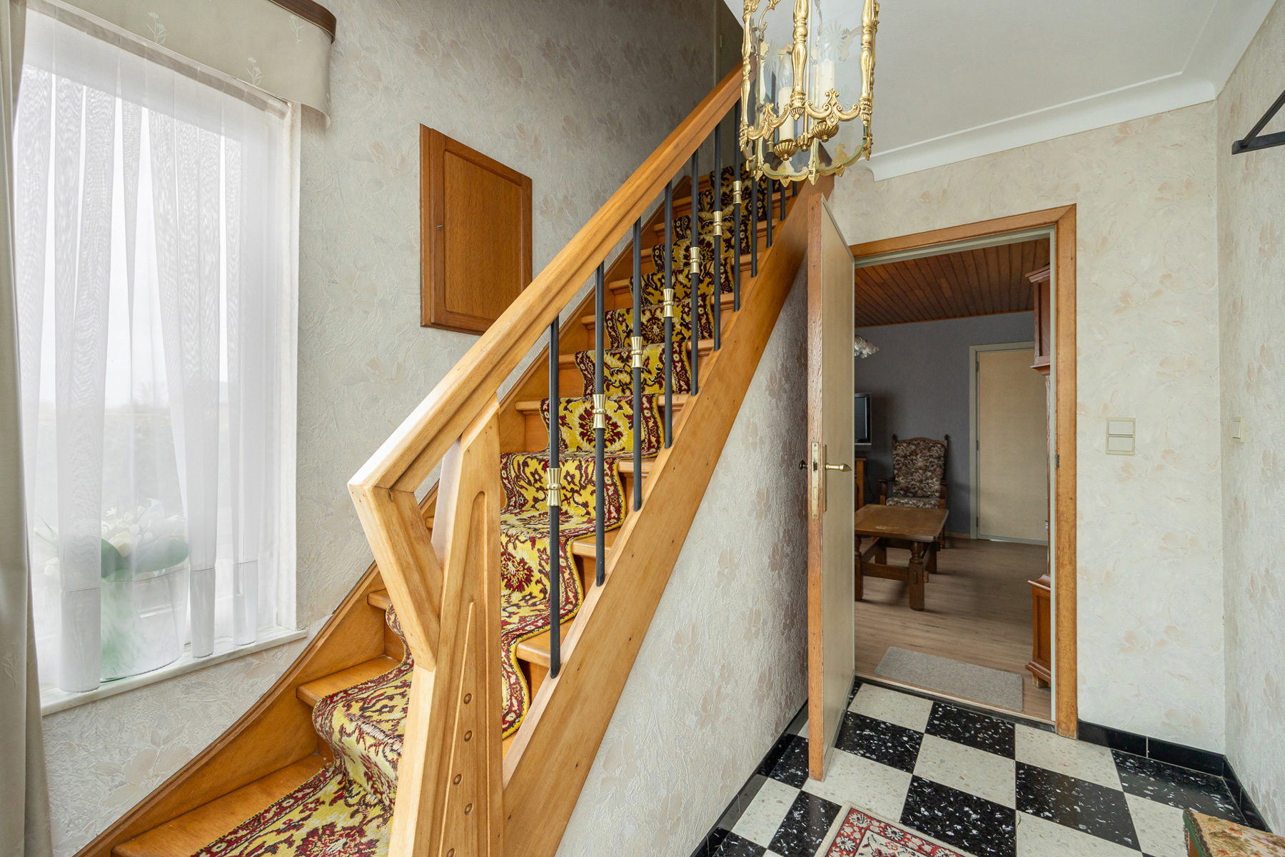 Via de inkomhal kom je in de woning en is er toegang tot verschillende ruimtes, zo kan je meteen naar de eerste verdieping of naar de eetkamer. Bij binnenkomst in de eetkamer heeft u aan de rechterzijde een lichtrijke leefruimte, verder kan je de keuken betreden met achterliggend een ruime berging/wasplaats met gerenoveerde douche en toilet.