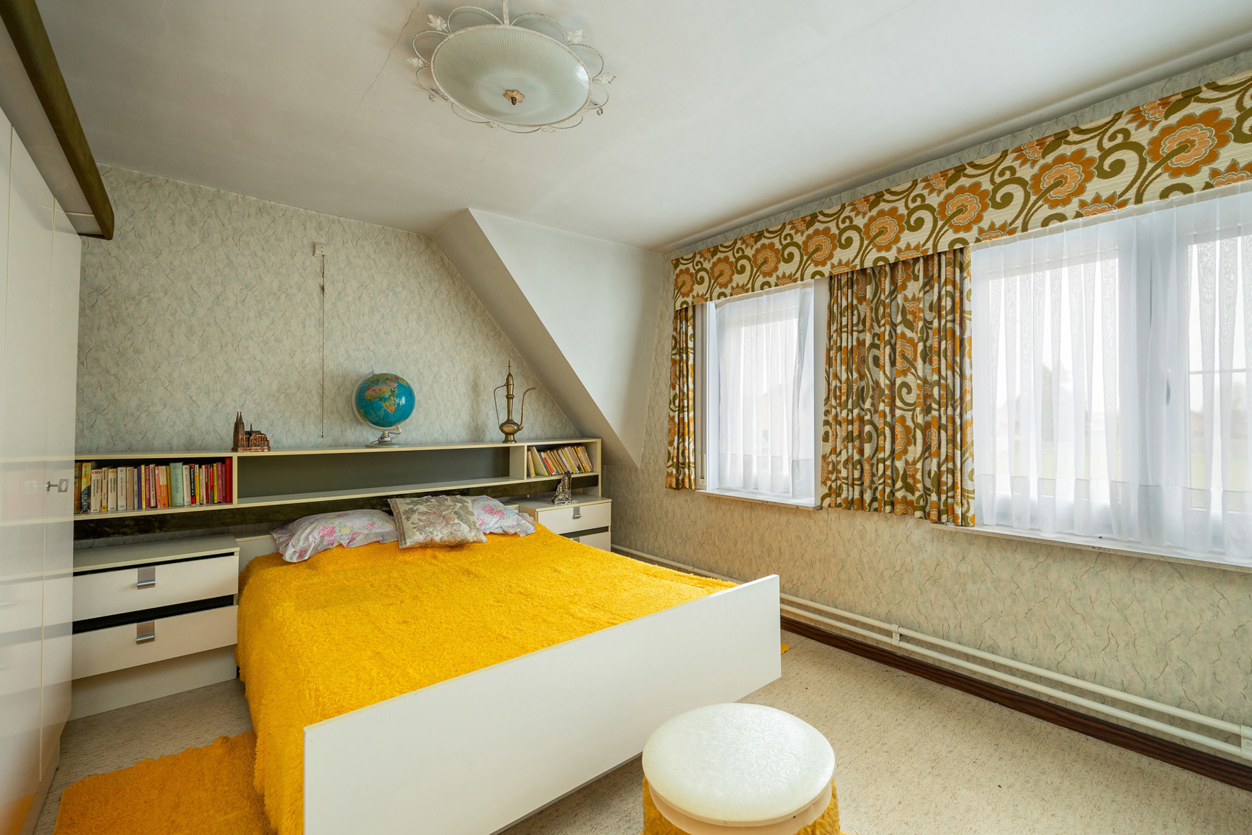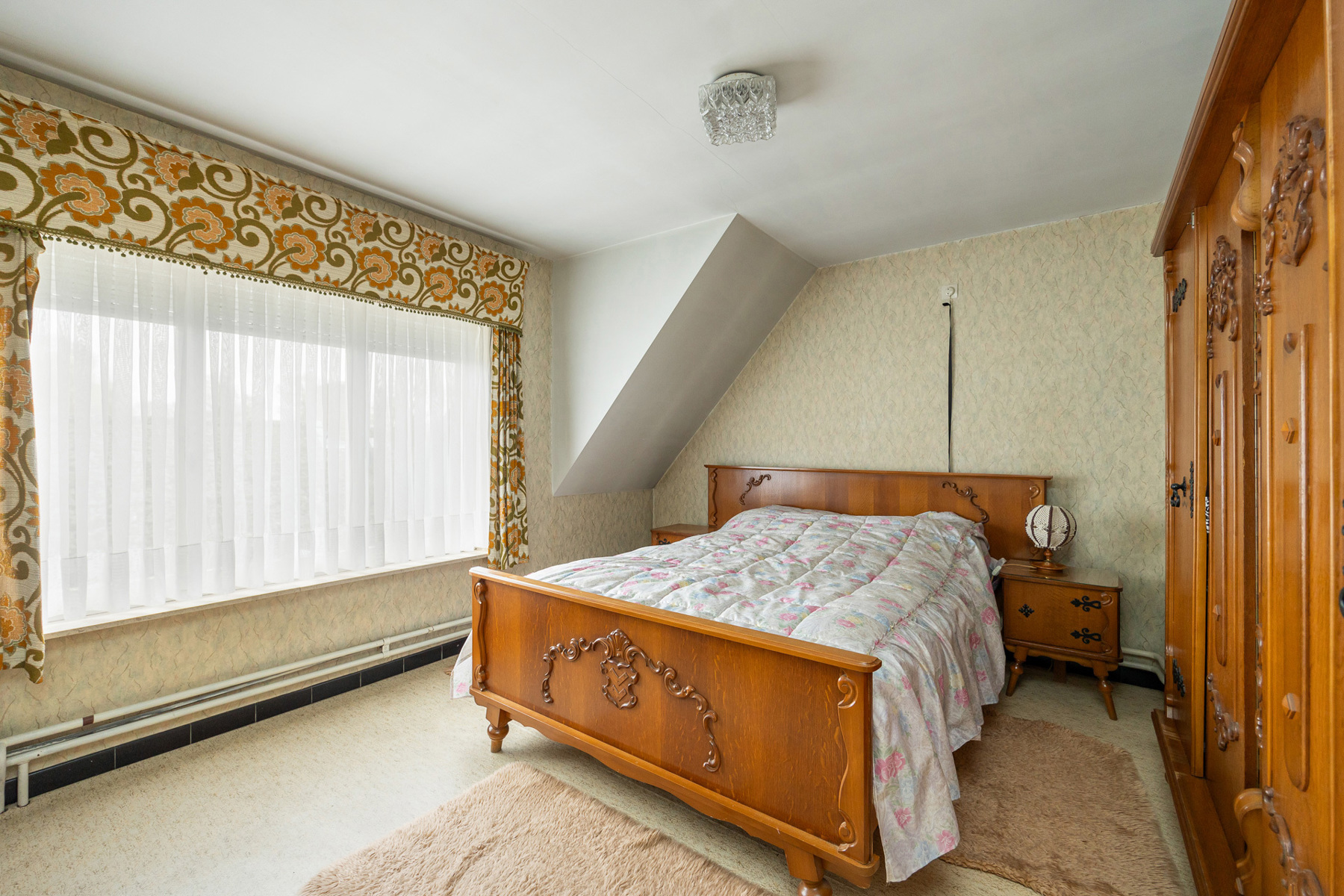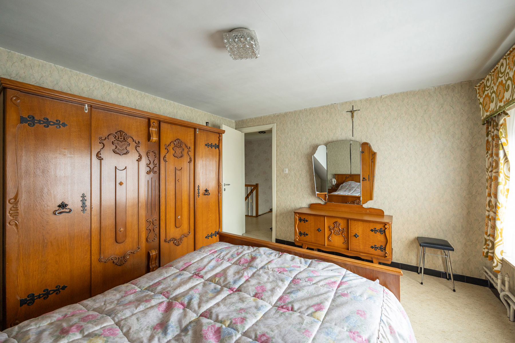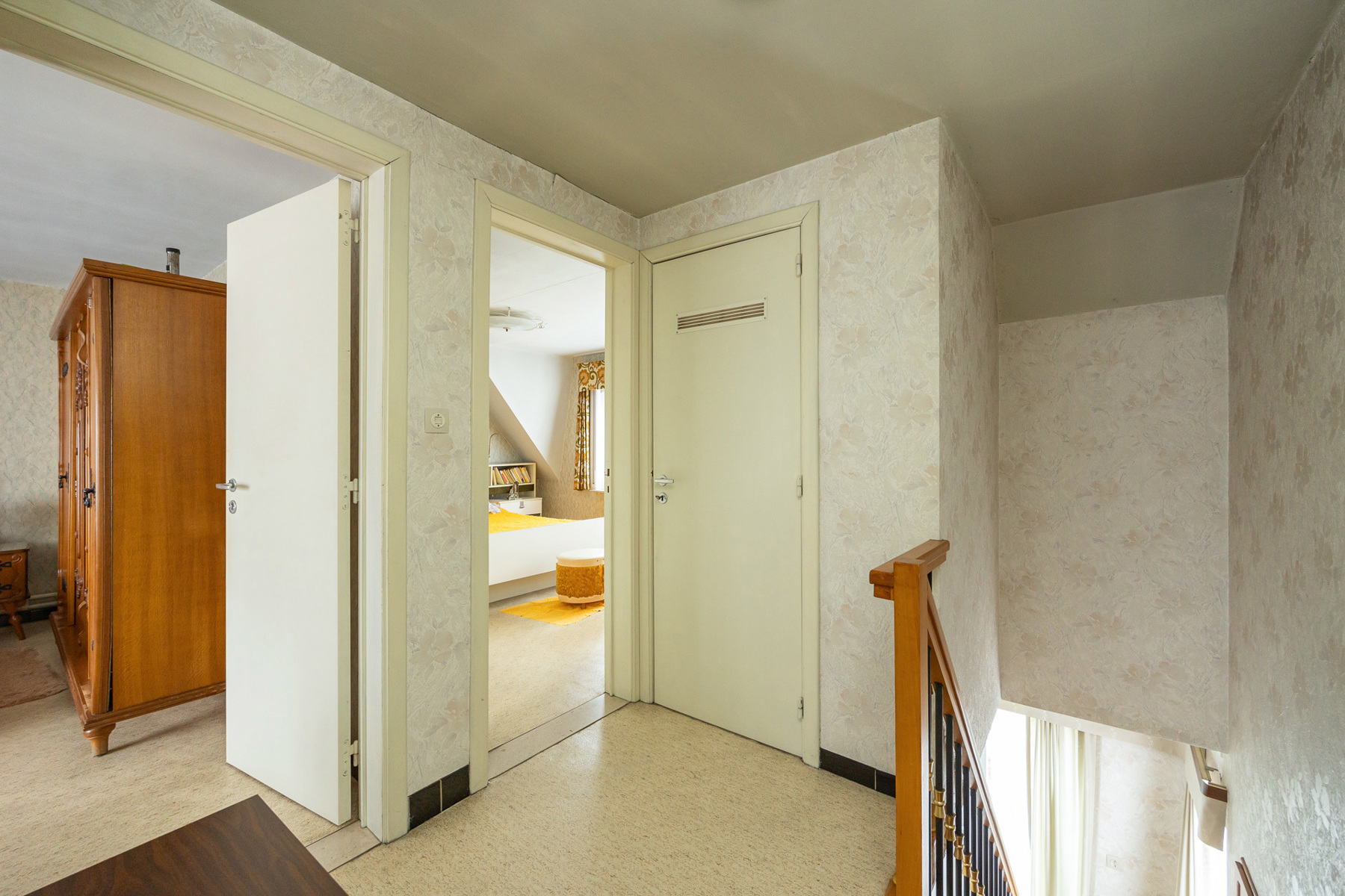 Op de eerste verdieping zijn er 3 slaapkamers aanwezig samen met een badkamer (meubel + bad), ook is er nog een ingebouwde kast voorzien in de nachthal en toegang voorzien naar de zolder via een luik.