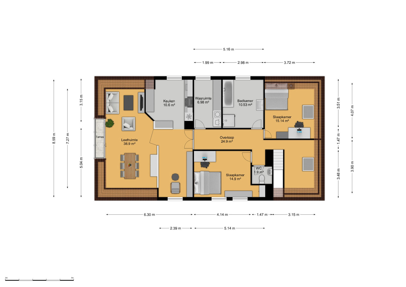 De zolder zorgt voor extra opbergruimte. Elke woonlaag geniet van eigen zijn eigen buitenruimte: een leuk aangekleed terras vooraan, een tuin met stockage achteraan, een aangenaam terras achteraan op de eerste verdieping en een knus terras vooraan op de tweede verdieping.
