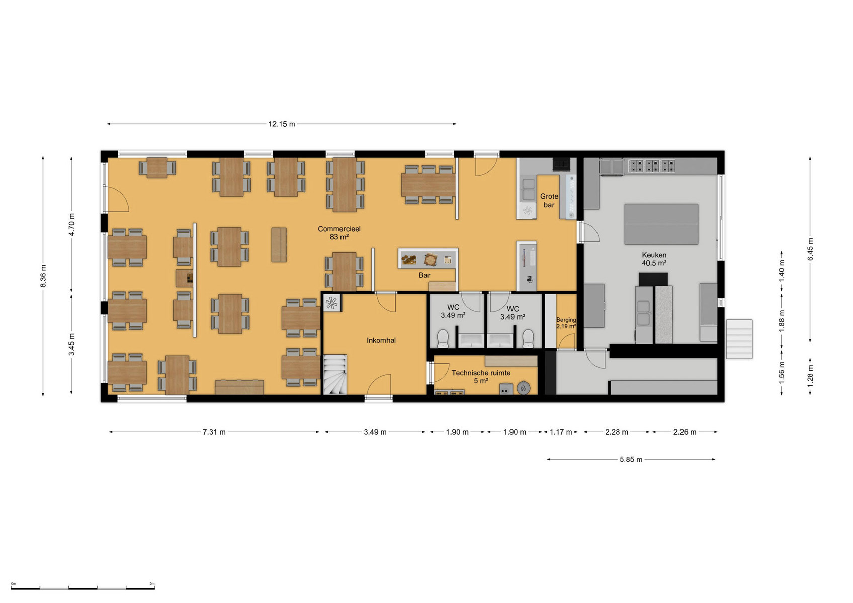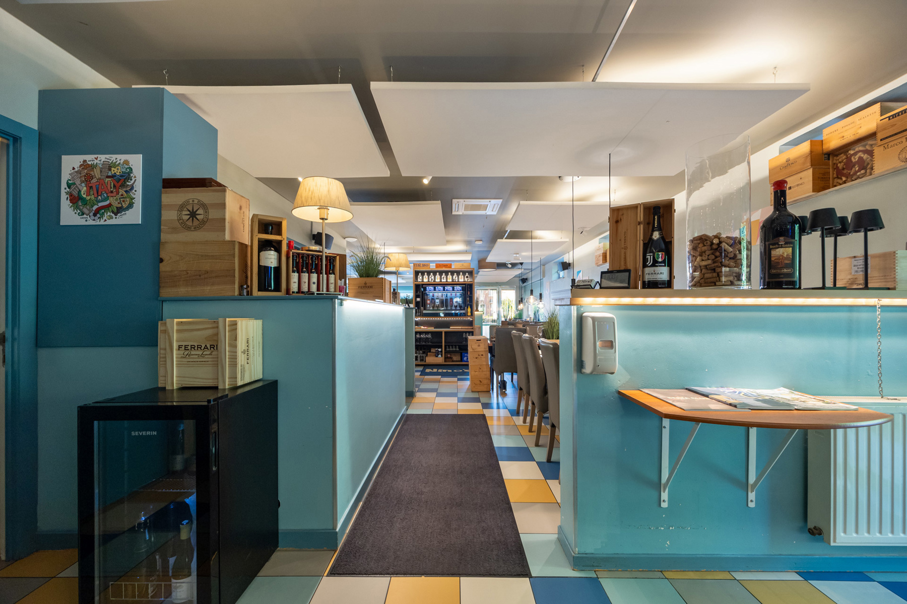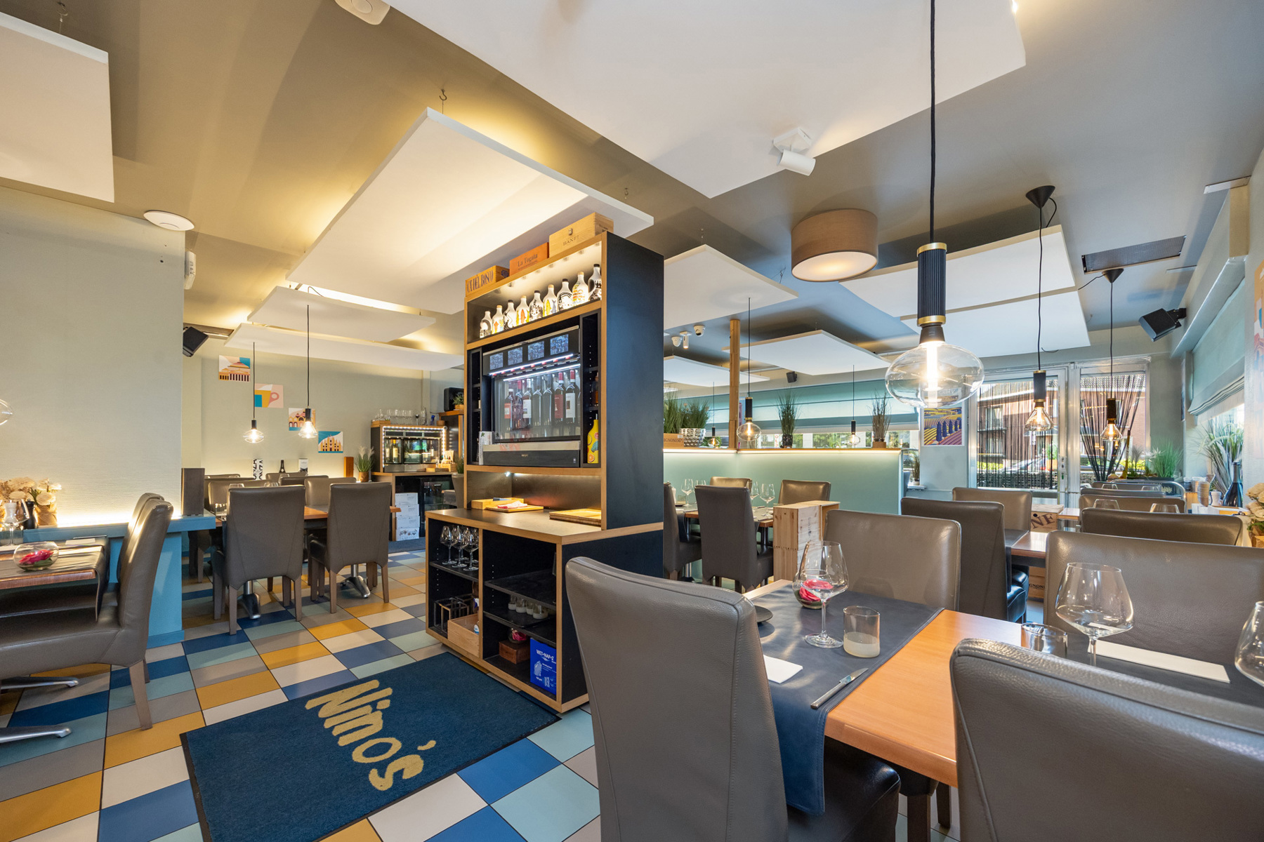 Het gelijkvloers is vandaag ingericht als een populair Italiaans restaurant (195 m²) met een uitnodigende open eetruimte, een elegante bar en een lichtrijke keuken met professioneel gasfornuis, handige bergruimte en twee gastentoiletten.