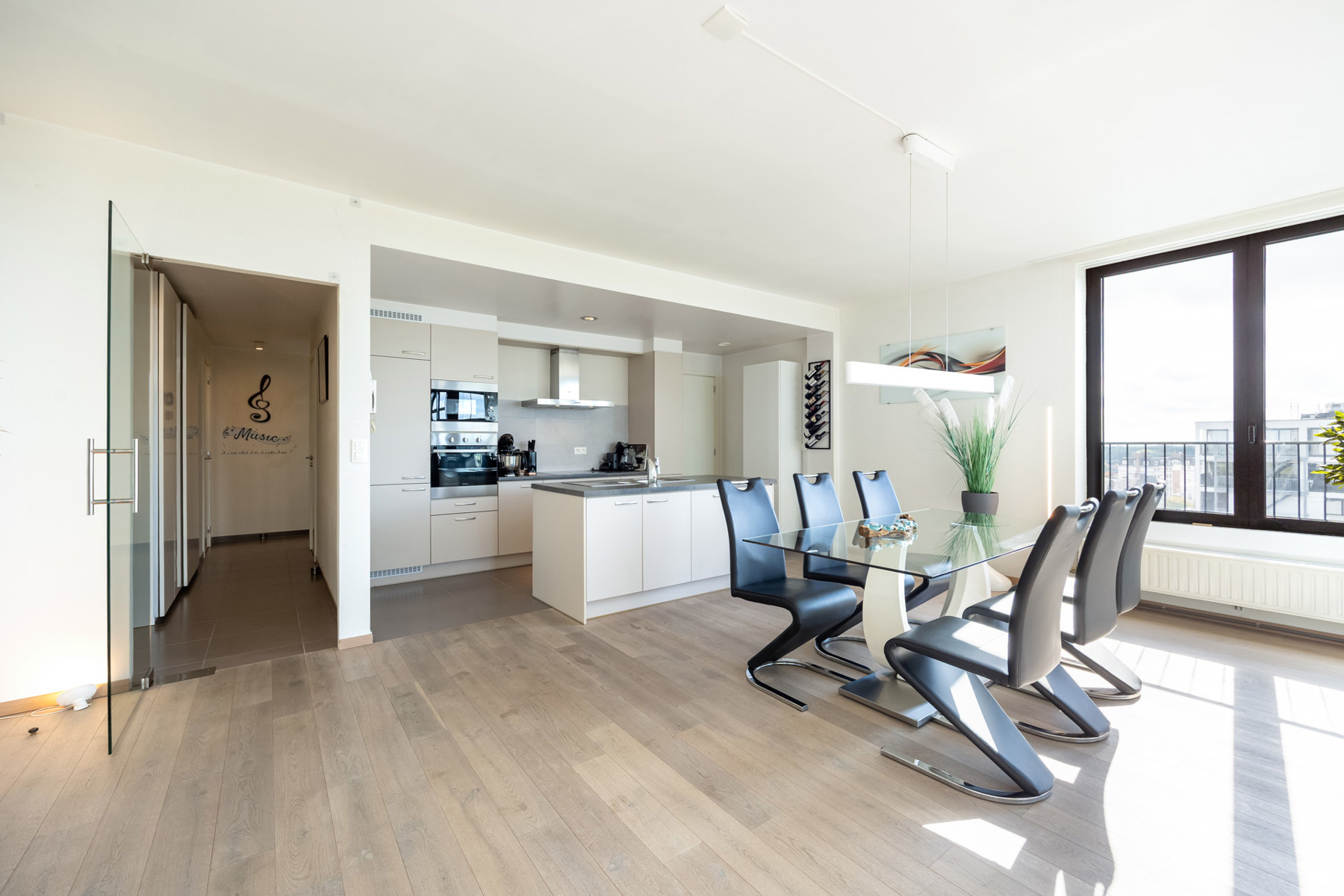 Met een bewoonbare oppervlakte van 130 m² biedt dit appartement een ruim en licht geheel. De leefruimte vormt het hart van de woning, met grote raampartijen die uitkijken op de Kaai en een open keuken die het woongedeelte extra gezellig maakt. Er zijn twee slaapkamers, een badkamer en een praktische berging. Het inpandige terras van 9,5 m² is een fijne plek om beschut buiten te genieten met zicht op het water. In de ondergrondse kelder zijn zowel een autostaanplaats met eigen laadpunt als een extra berging aanwezig, inbegrepen in de prijs.