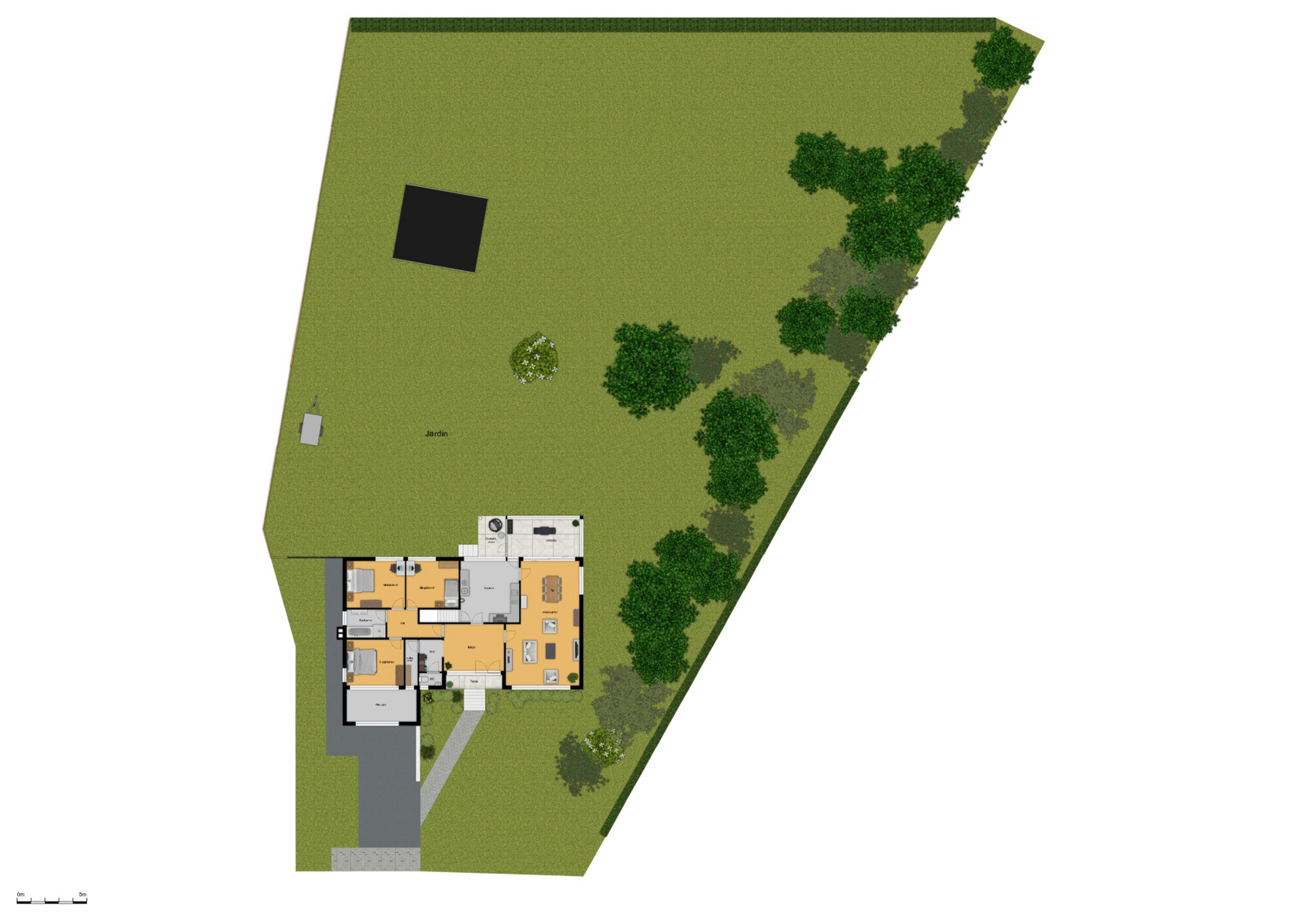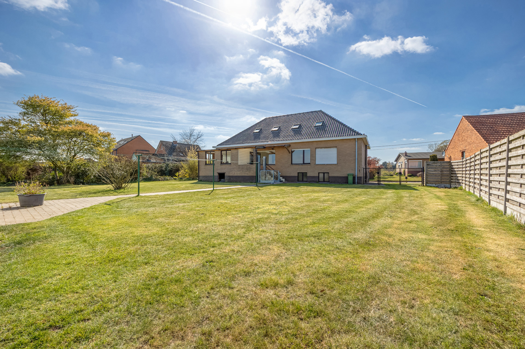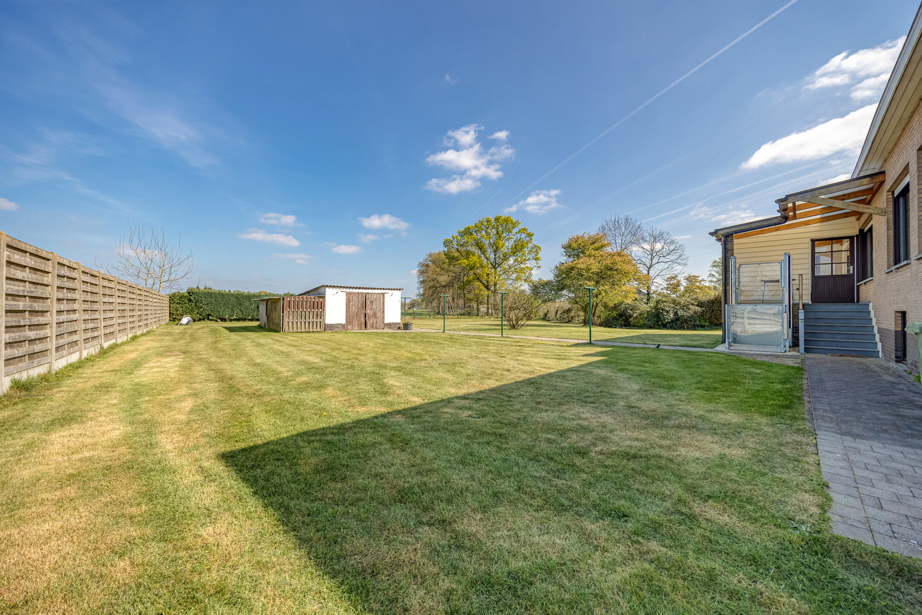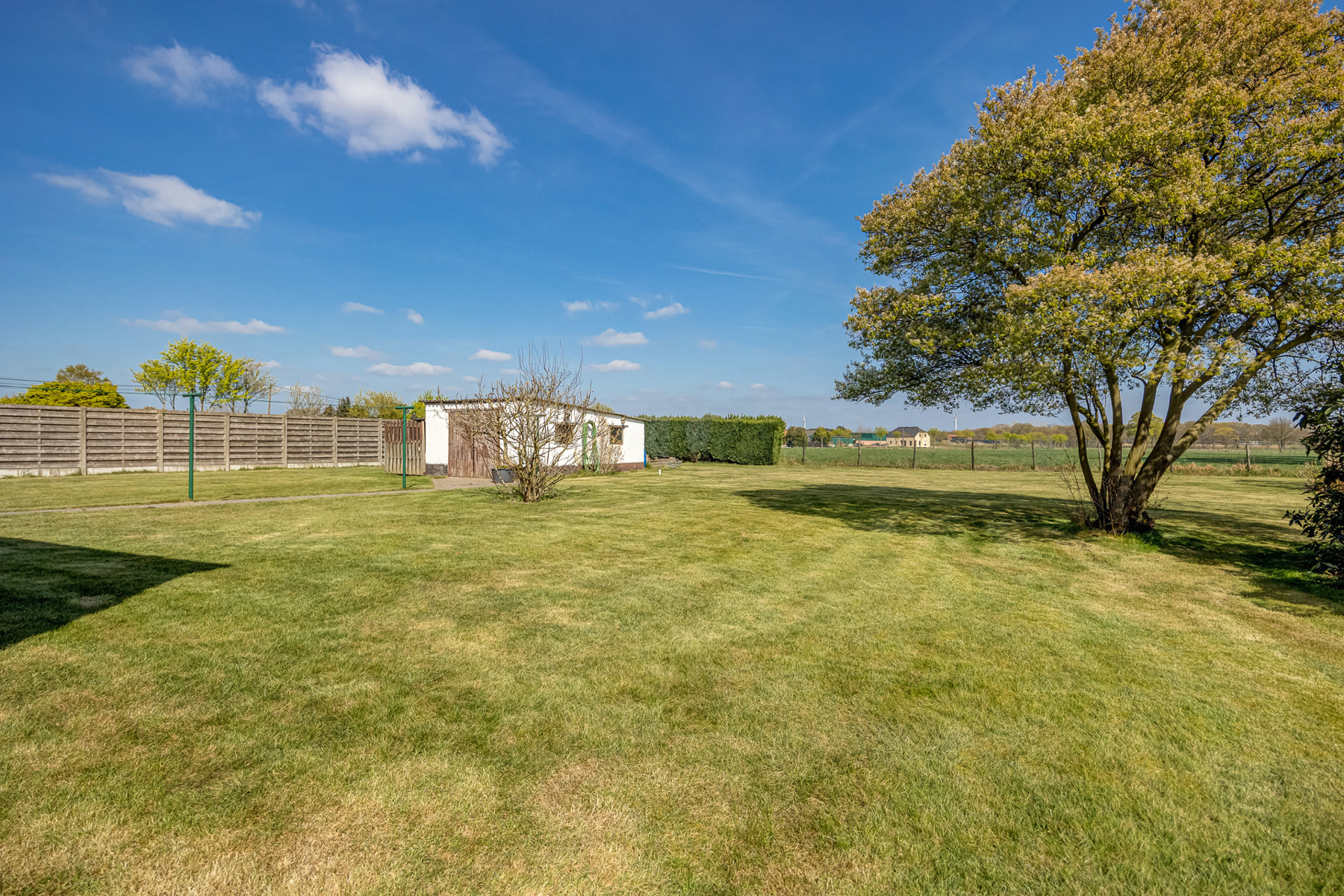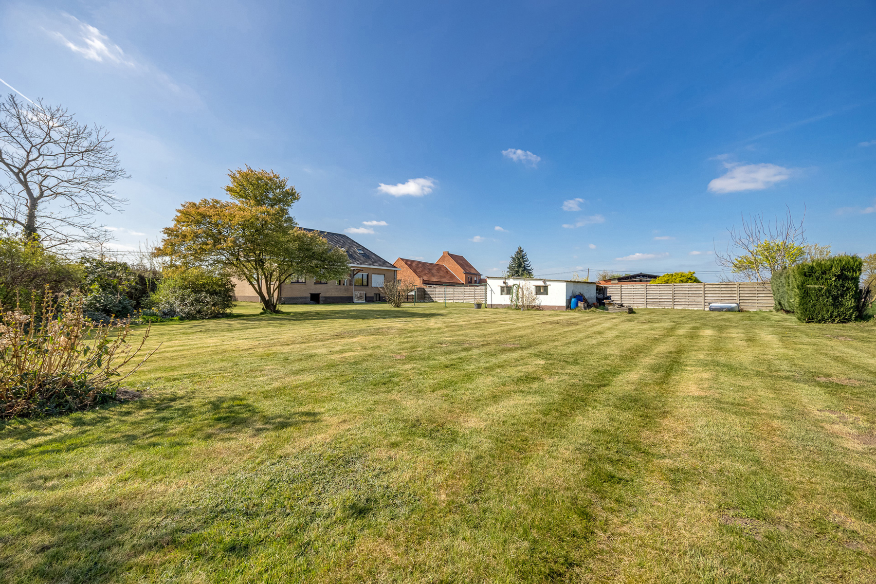 De tuin, oostelijk georiënteerd, biedt zowel ochtendzon als voldoende privacy. Op een perceel van 18a25ca kan je hier genieten van rust en een groene omgeving.
