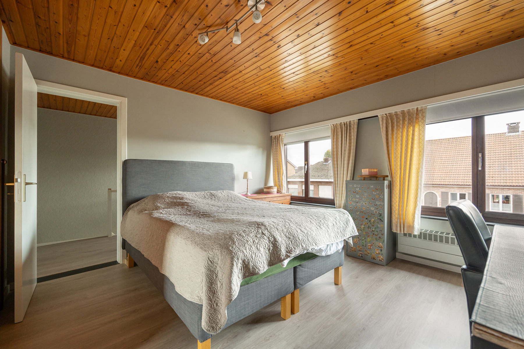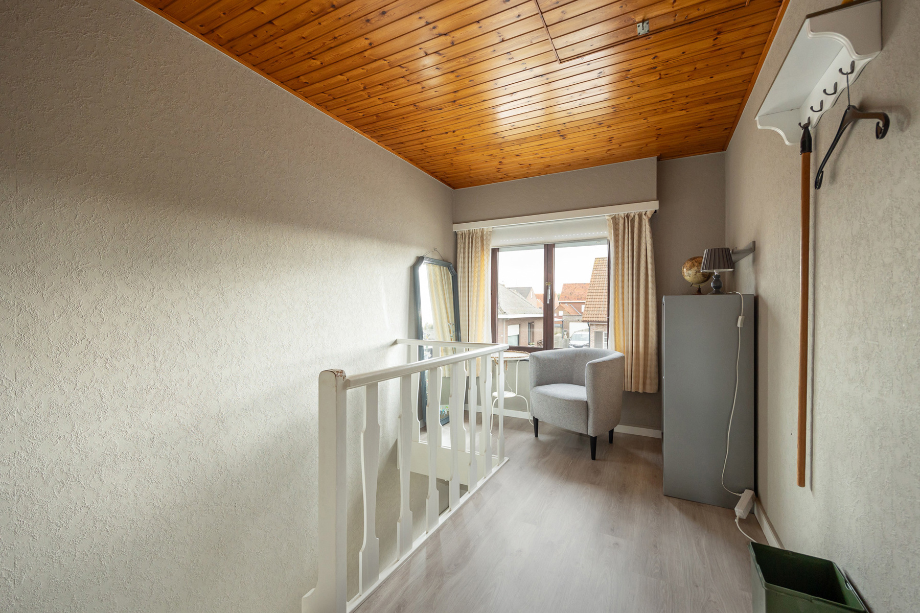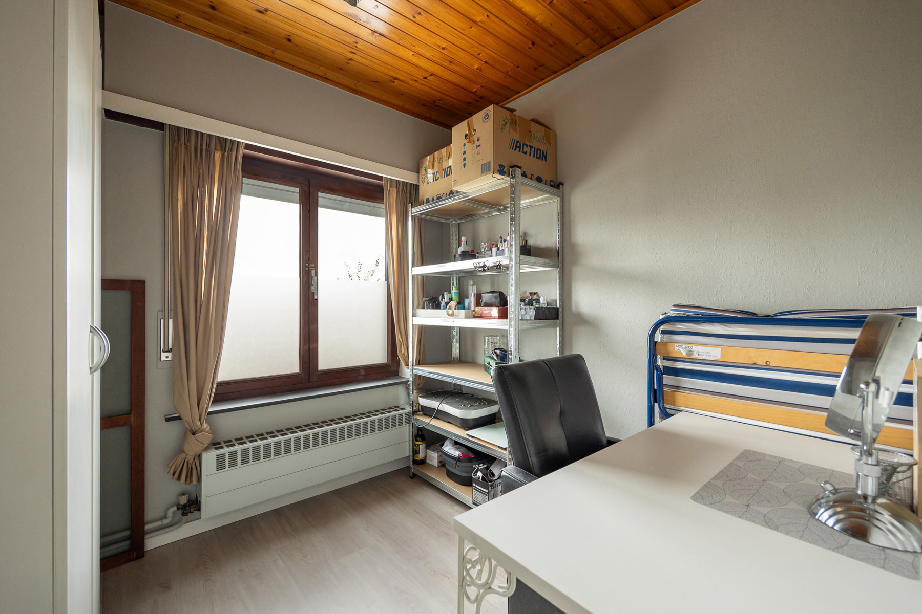Op de verdieping bevinden zich twee ruime slaapkamers en een derde, kleinere kamer die perfect dienst kan doen als bureau of kinderkamer. De badkamer is uitgerust met een douche in bad, lavabo en toilet. De zolder biedt bijkomende bergruimte en interessante uitbreidingsmogelijkheden.