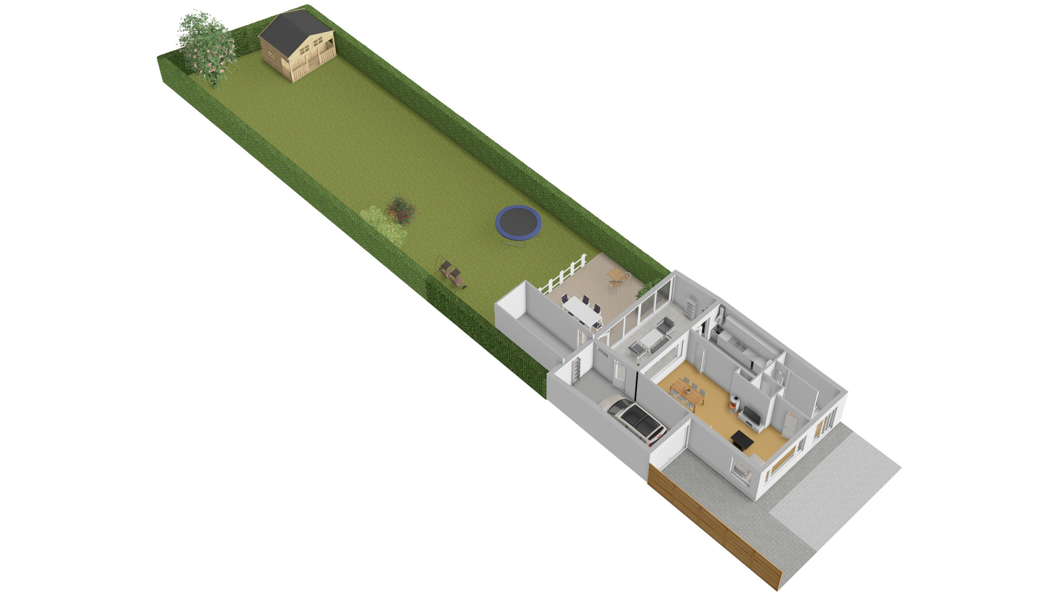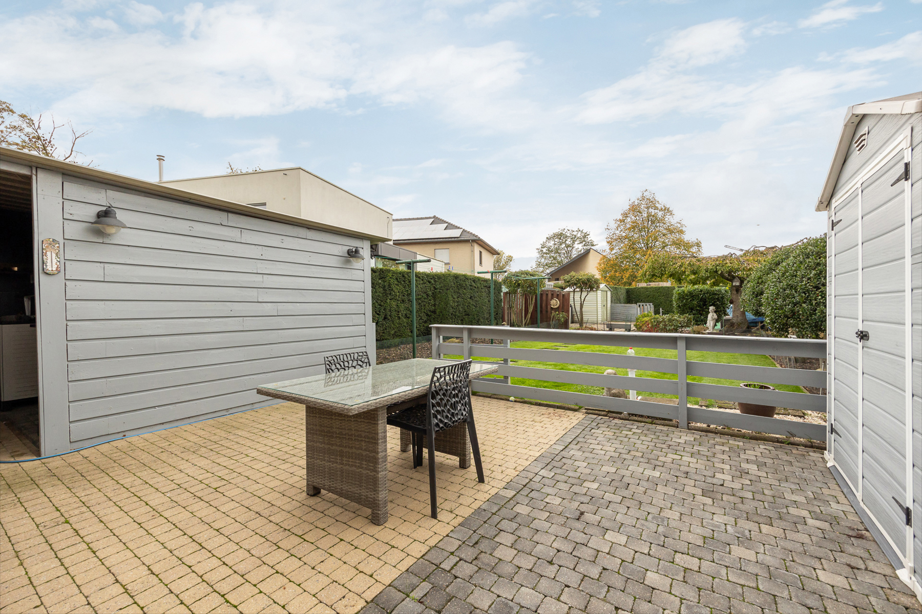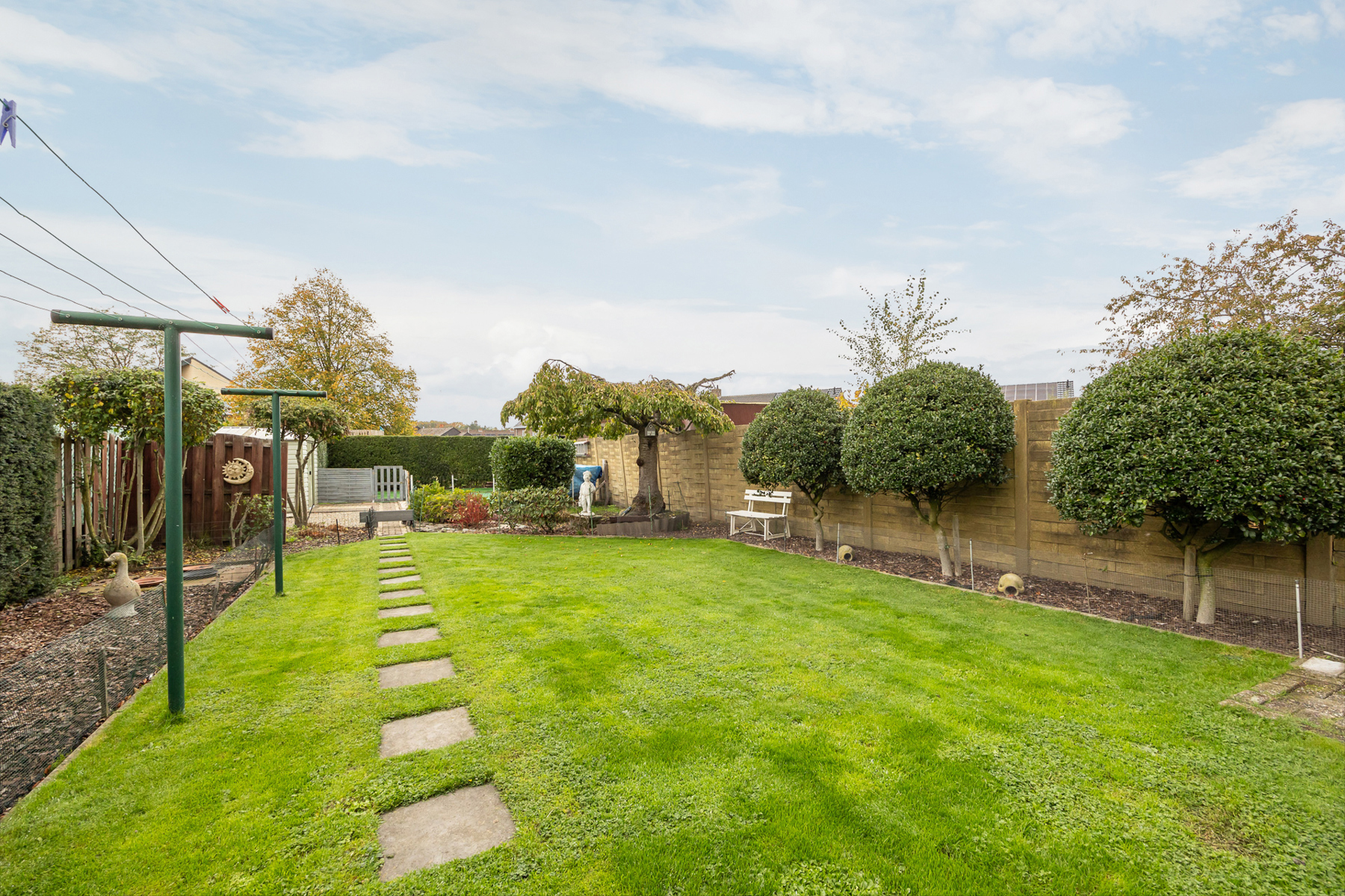 Buiten geniet je van een verzorgde tuin met aangelegd terras, waar privacy en rust centraal staan. De woning beschikt daarnaast over een garage en een oprit met voldoende parkeergelegenheid.