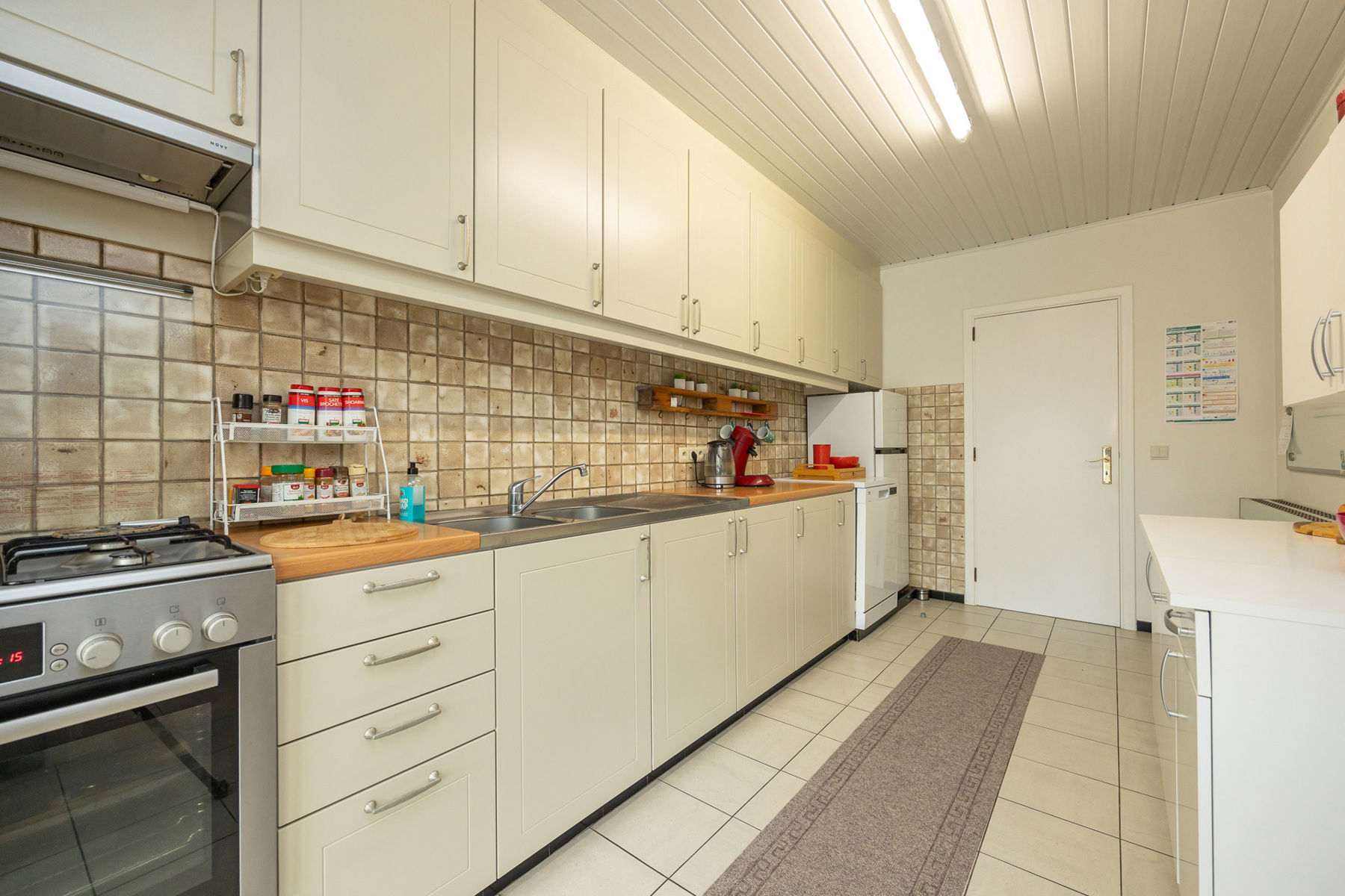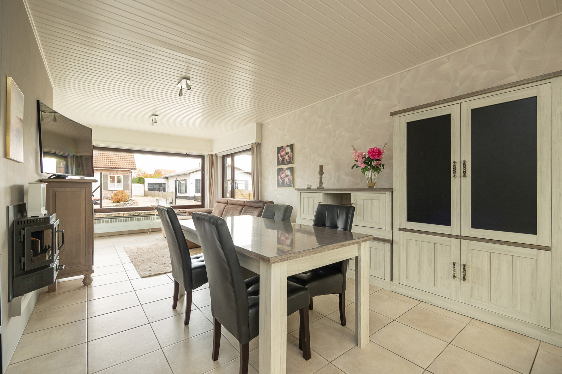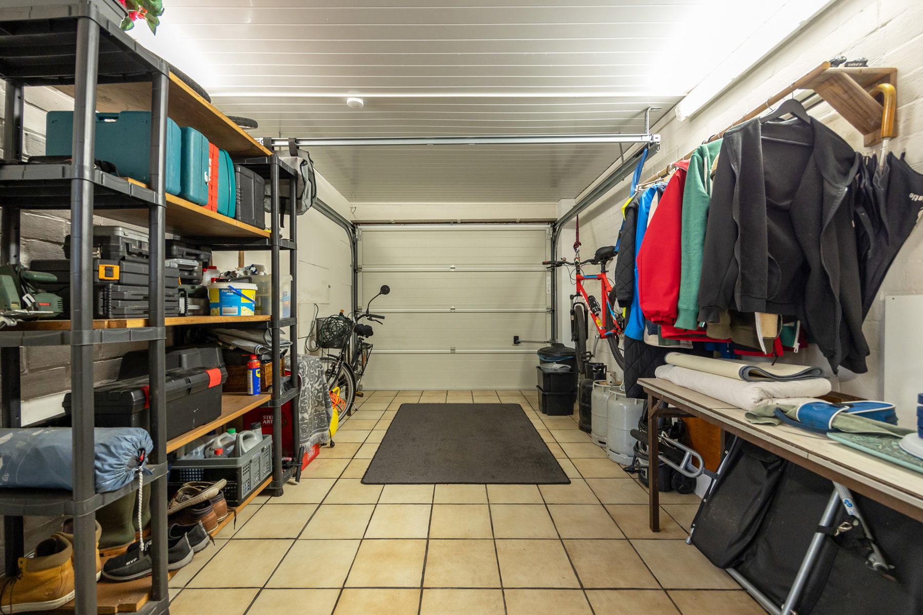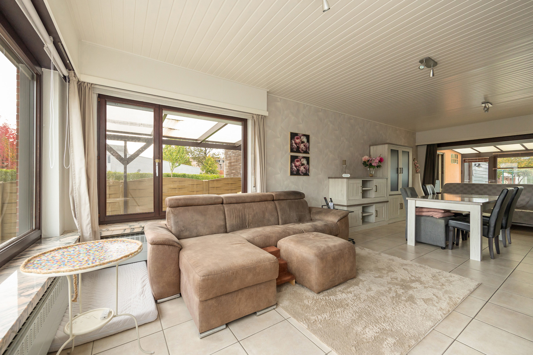 Bij het betreden van de woning kom je via de inkomhal met gastentoilet in de lichtrijke leefruimte, ingedeeld in een gezellige zithoek en een eetgedeelte met aangenaam tuinzicht. Aansluitend bevindt zich de geïnstalleerde keuken, die uitgeeft op een veranda — een ideale plek om te genieten van het zicht op de tuin. Via deze veranda is ook de garage bereikbaar, wat het geheel extra praktisch maakt.