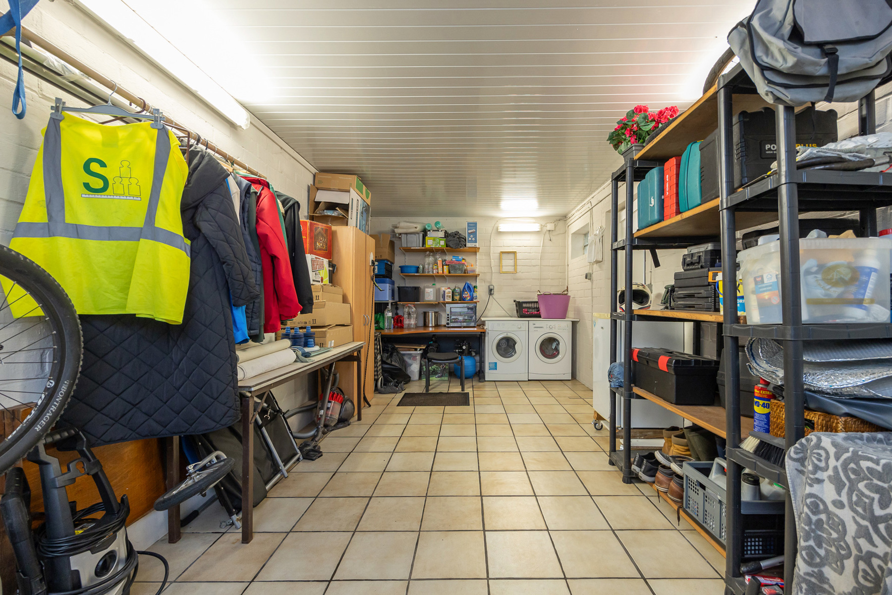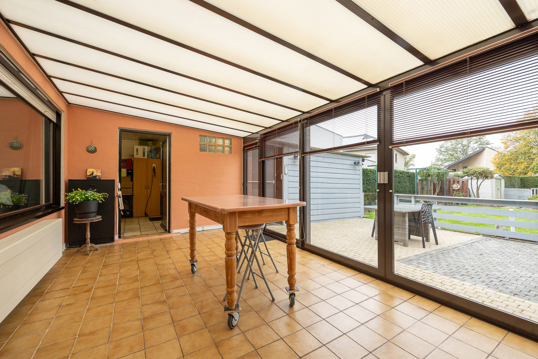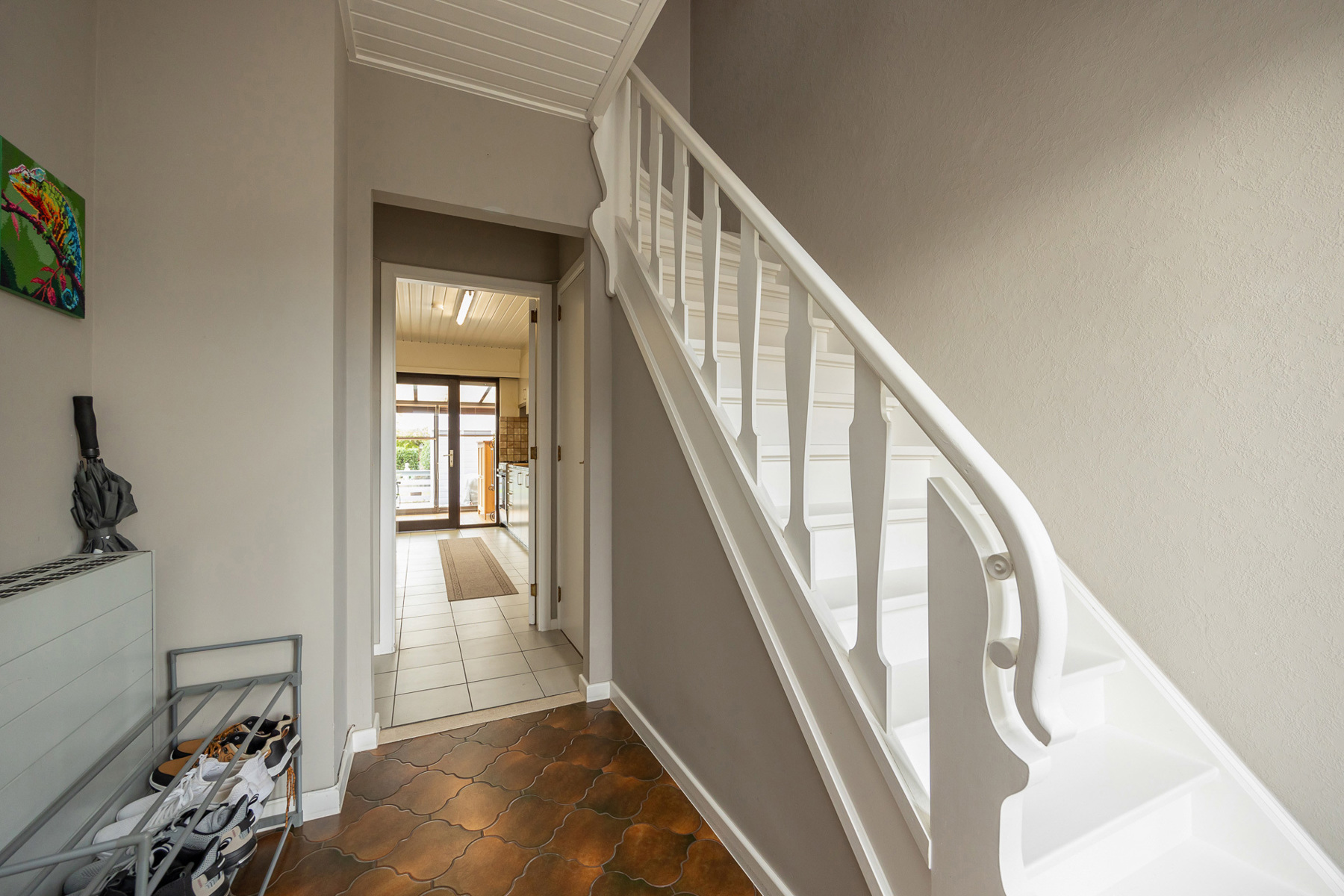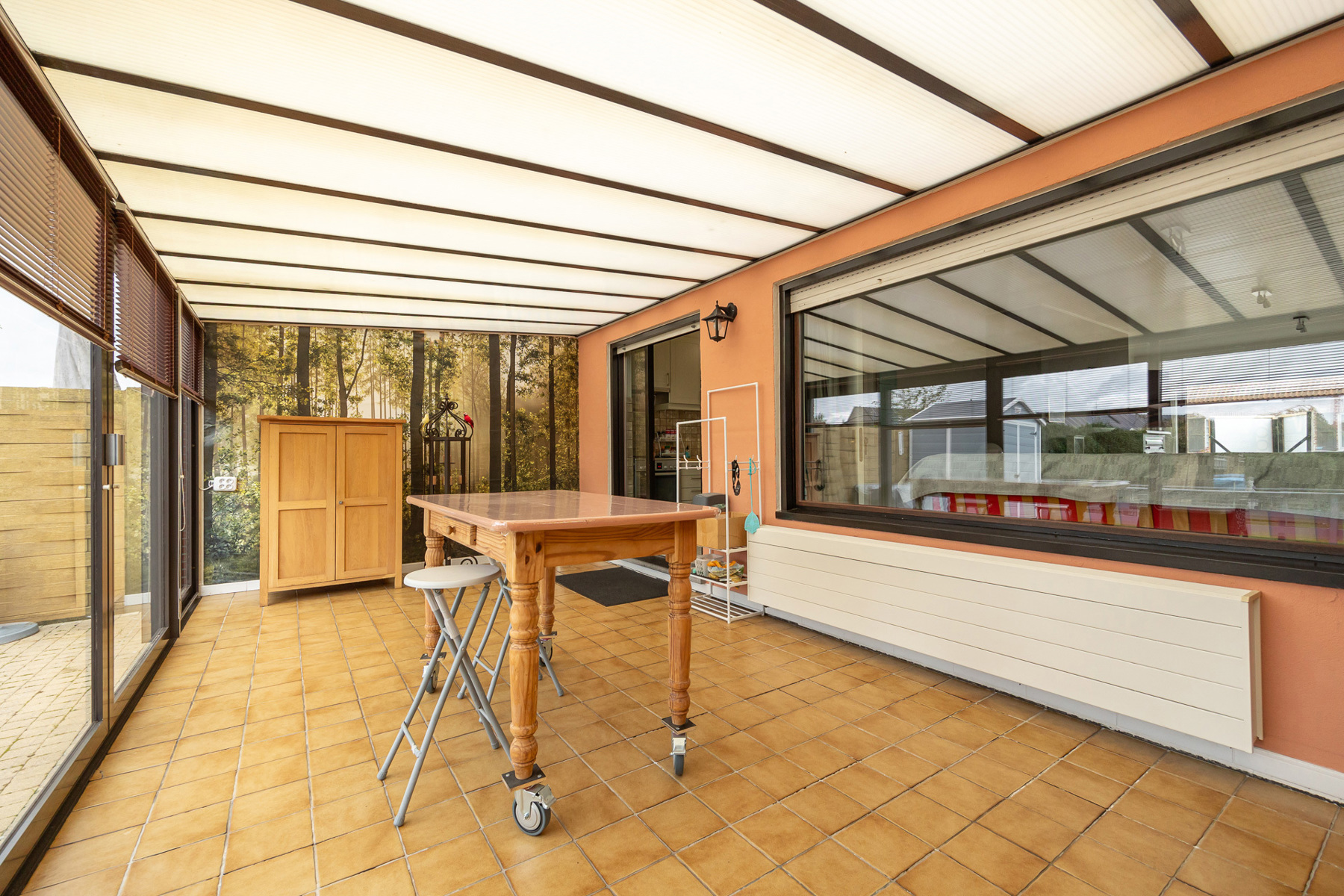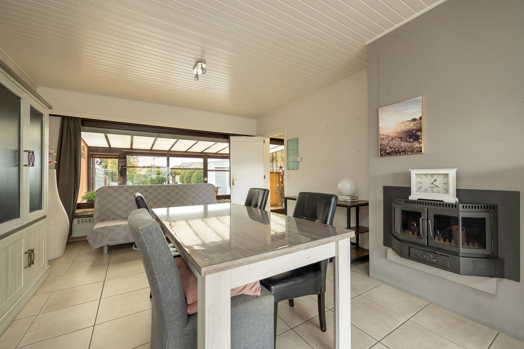 Bij het betreden van de woning kom je via de inkomhal met gastentoilet in de lichtrijke leefruimte, ingedeeld in een gezellige zithoek en een eetgedeelte met aangenaam tuinzicht. Aansluitend bevindt zich de geïnstalleerde keuken, die uitgeeft op een veranda — een ideale plek om te genieten van het zicht op de tuin. Via deze veranda is ook de garage bereikbaar, wat het geheel extra praktisch maakt.