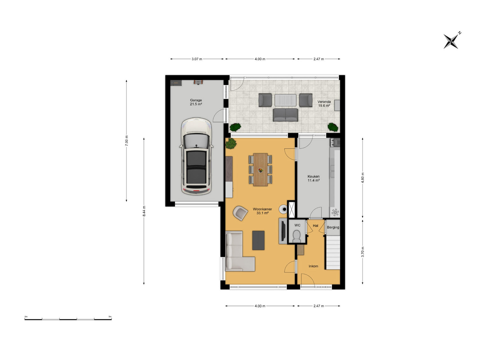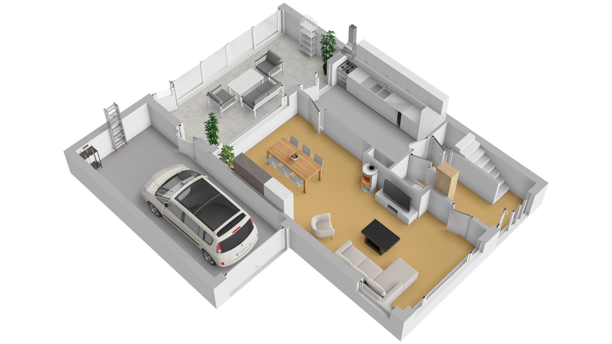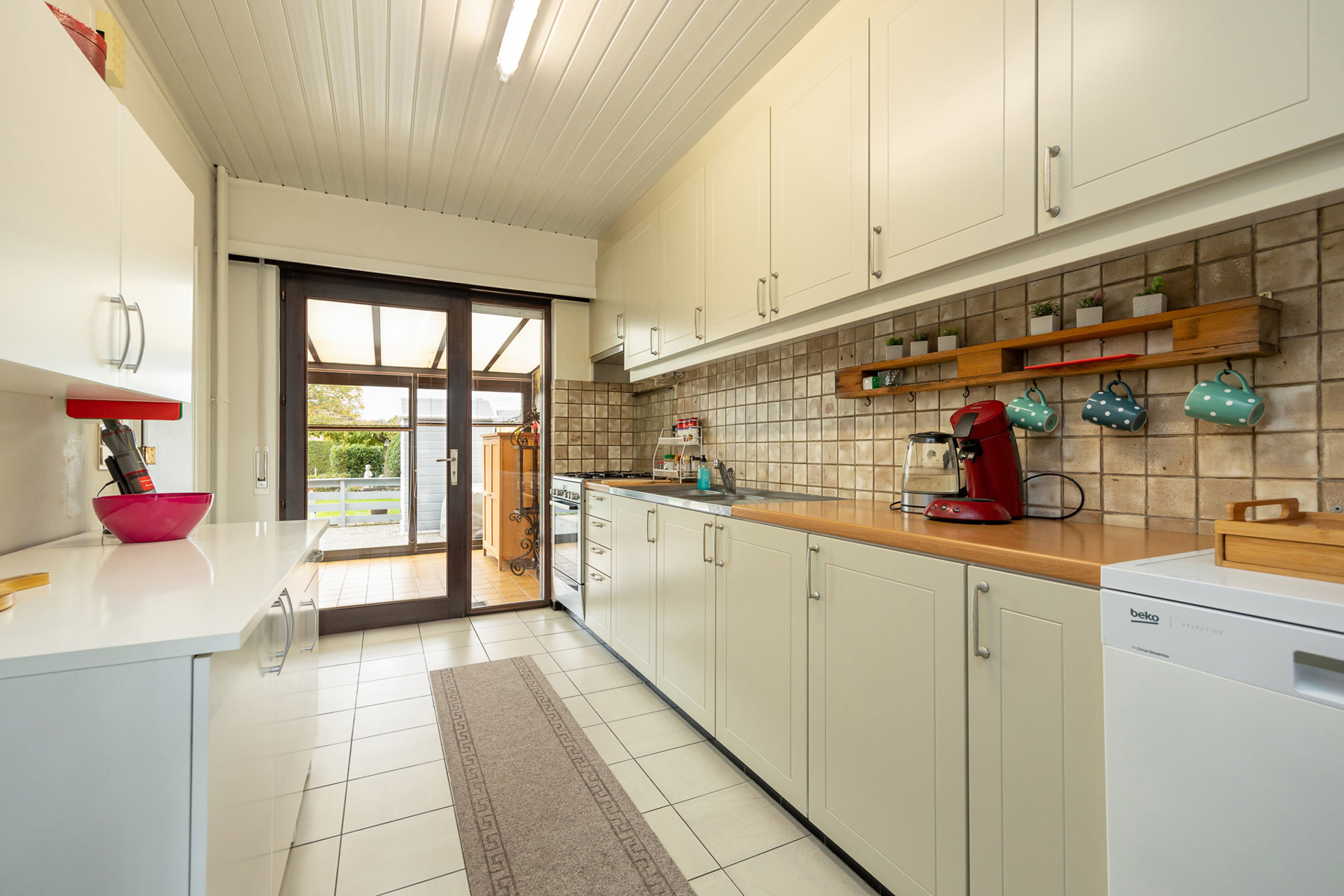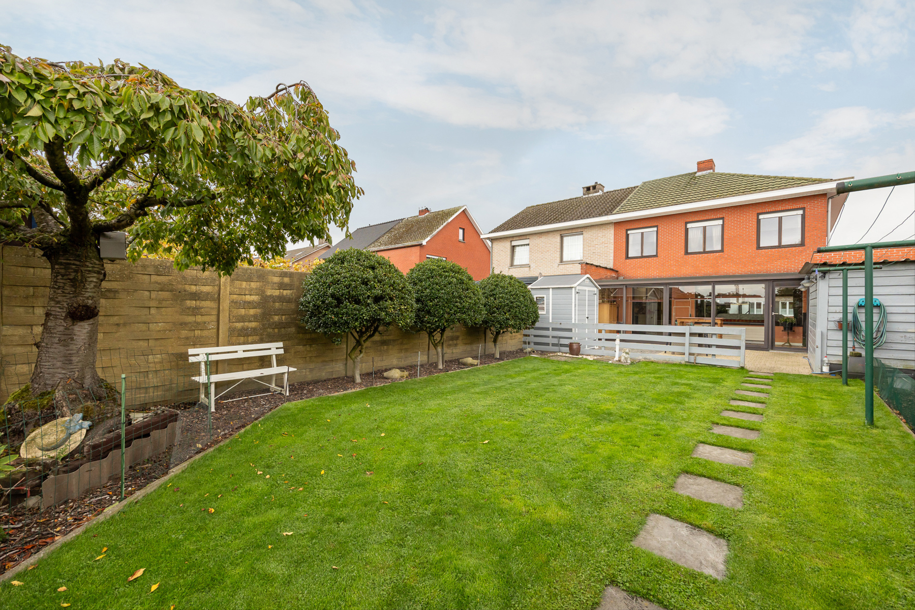 Bij het betreden van de woning kom je via de inkomhal met gastentoilet in de lichtrijke leefruimte, ingedeeld in een gezellige zithoek en een eetgedeelte met aangenaam tuinzicht. Aansluitend bevindt zich de geïnstalleerde keuken, die uitgeeft op een veranda — een ideale plek om te genieten van het zicht op de tuin. Via deze veranda is ook de garage bereikbaar, wat het geheel extra praktisch maakt.