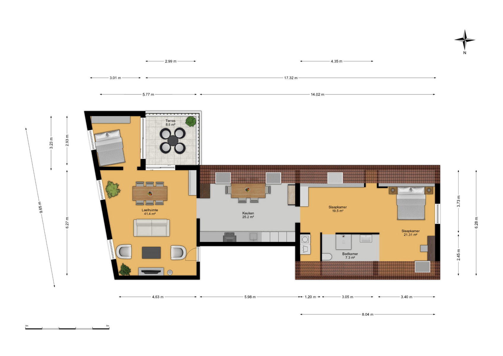 Met een bewoonbare oppervlakte van net geen 150m² biedt dit appartement bijzonder veel ruimte en comfort. Het appartement bevindt zich op de tweede verdieping van een goed onderhouden gebouw en verwelkomt u via een inkomhal. De ruime leefruimte creëert een aangename en warme plek waar gezelligheid en functionaliteit samenkomen. De keuken is uitgerust met alle comfort en beschikt over moderne, kwalitatieve toestellen. Dankzij de praktische indeling en ingebouwde kasten is het een aangename plek om te koken en te genieten van gezellige momenten aan tafel. Verder zijn er twee slaapkamers, waarvan één ruime slaapkamer en één kleinere kamer, ideaal als kinderkamer of bureau. De badkamer is praktisch ingericht met douche, wc en lavabo. Via de leefruimte heeft u toegang tot het knusse terras, waar u in alle rust kunt genieten van een ontspannend moment.