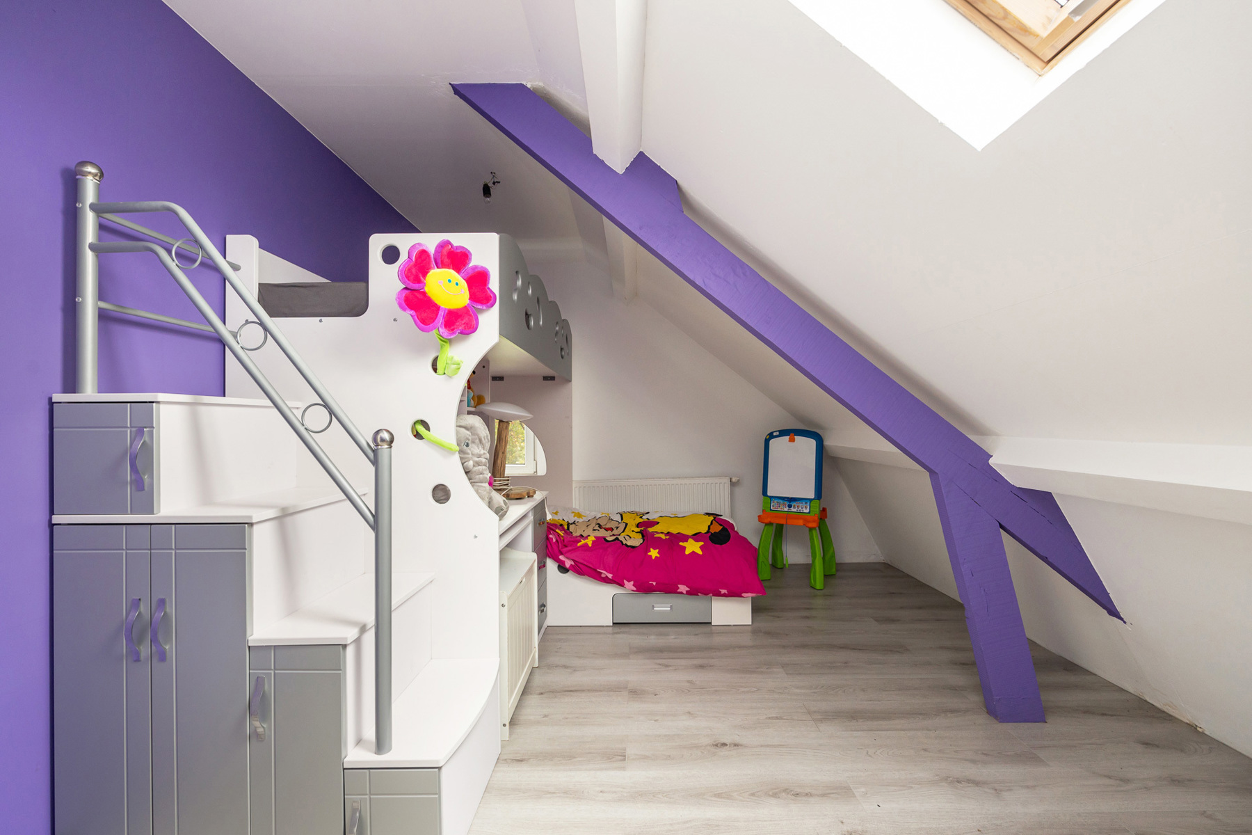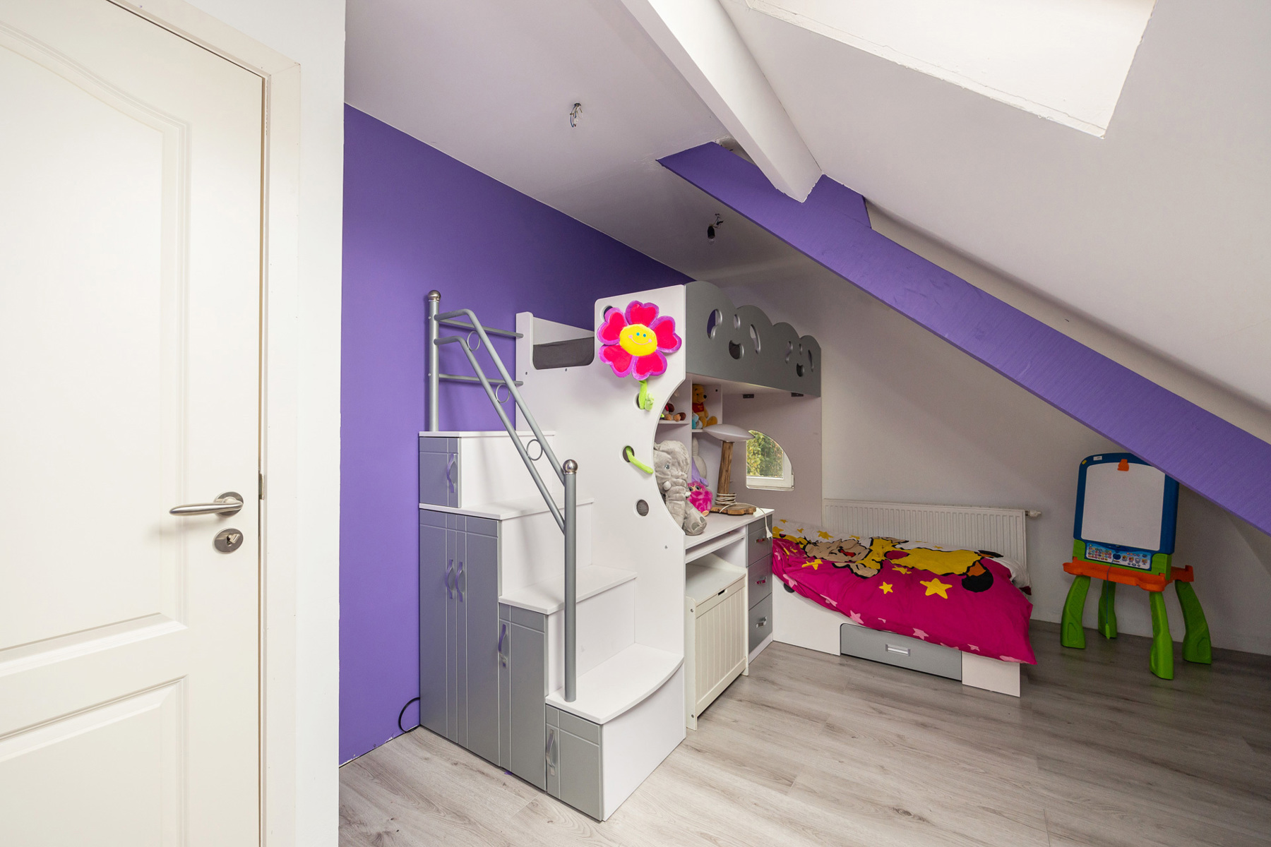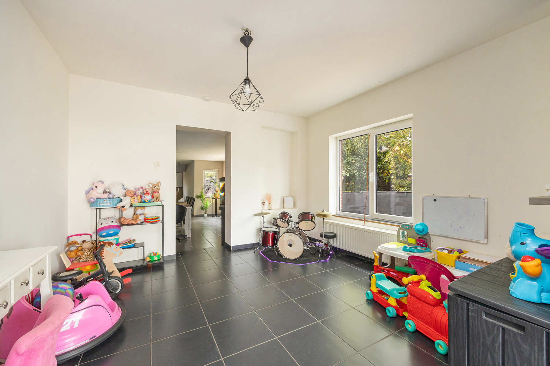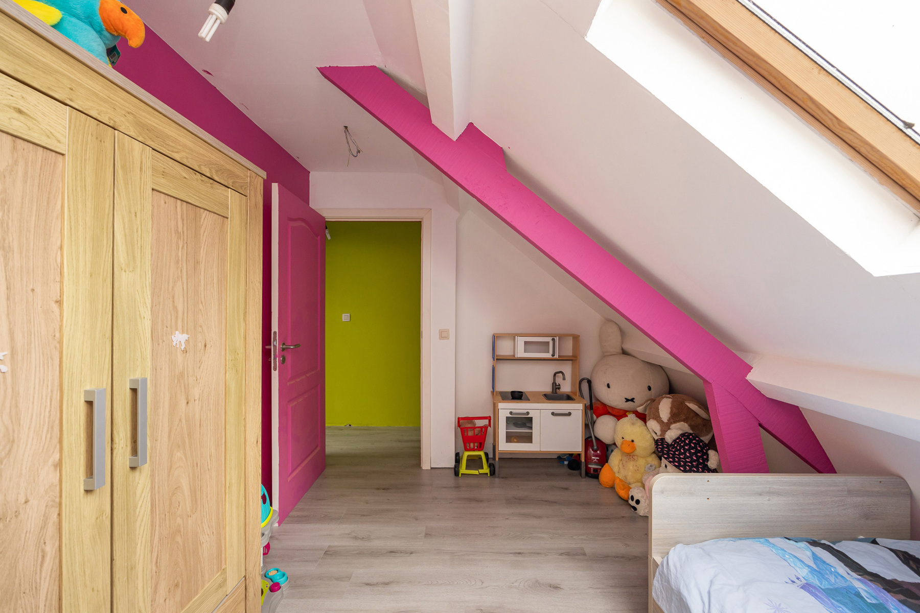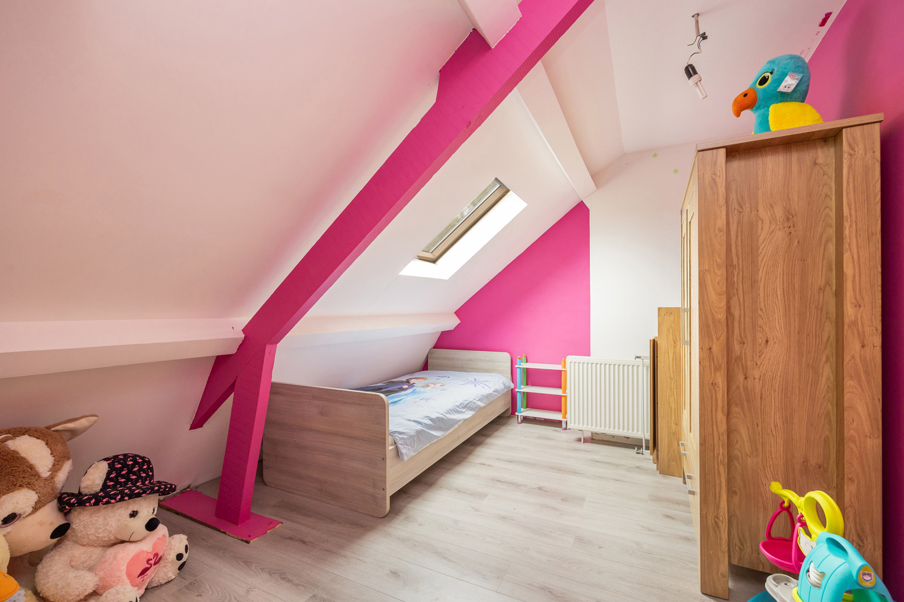 Op het gelijkvloers verwelkomt de lichte leef- en eetruimte je met een aangename openheid en een vlotte verbinding naar de functionele keuken. Verder bevinden zich hier een badkamer met ligbad, een apart toilet en een praktische wasplaats die extra bergruimte biedt. Op de eerste verdieping is er een ruime slaapkamer met aansluitende dressing, een tweede badkamer met douche en een extra toilet. De zolderverdieping is smaakvol ingericht als twee volwaardige slaapkamers, wat deze woning ideaal maakt voor een gezin of wie graag extra hobby- of bureauruimte wenst. De kelder zorgt voor bijkomende opbergmogelijkheden.