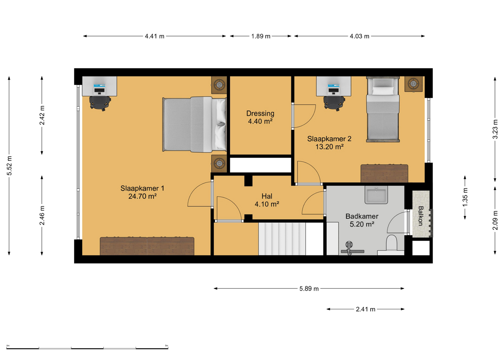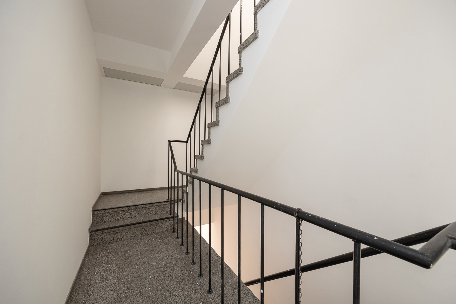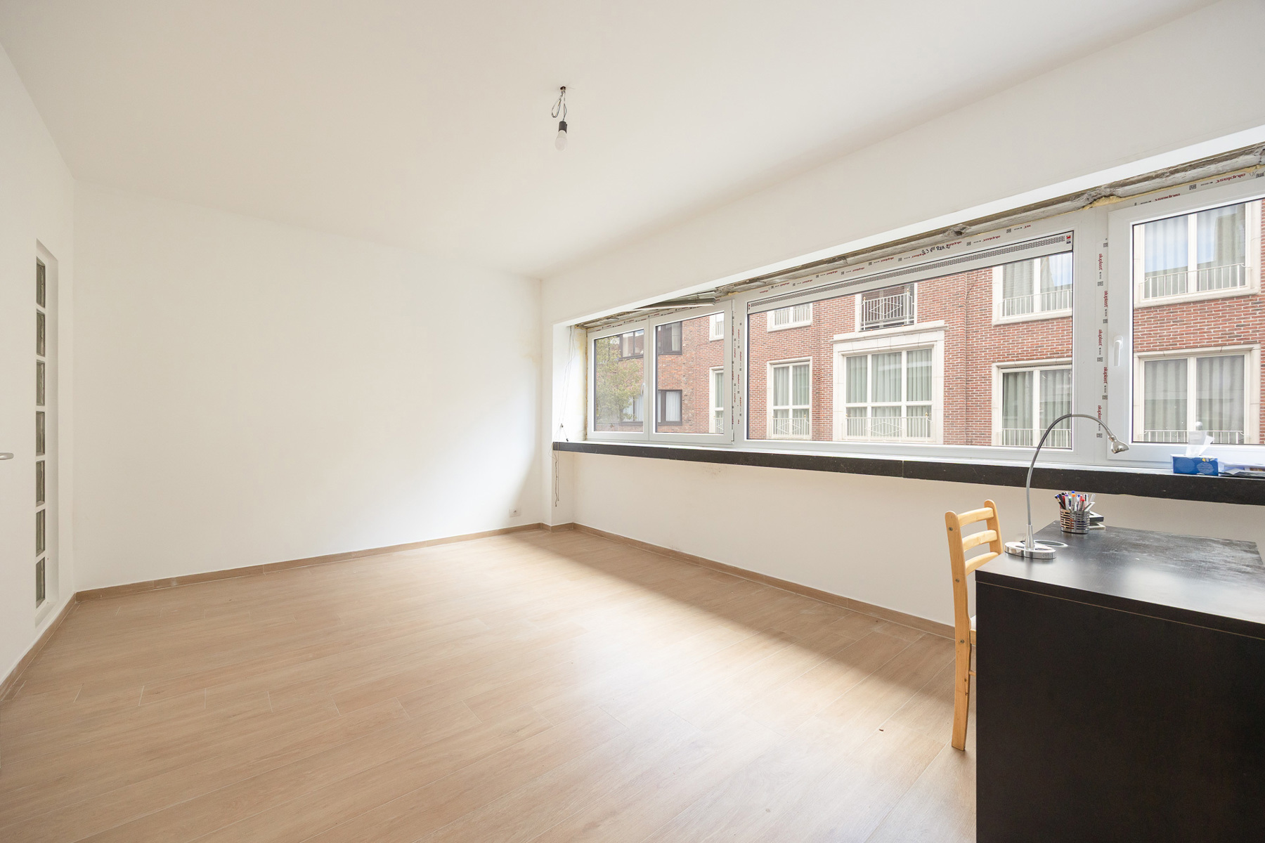 De tweede verdieping biedt twee volwaardige slaapkamers, waarvan één met dressingruimte. De badkamer is netjes ingericht met douche, lavabo en toilet. Een compact balkon aan de achterzijde biedt een aangename buitenruimte midden in de stad.