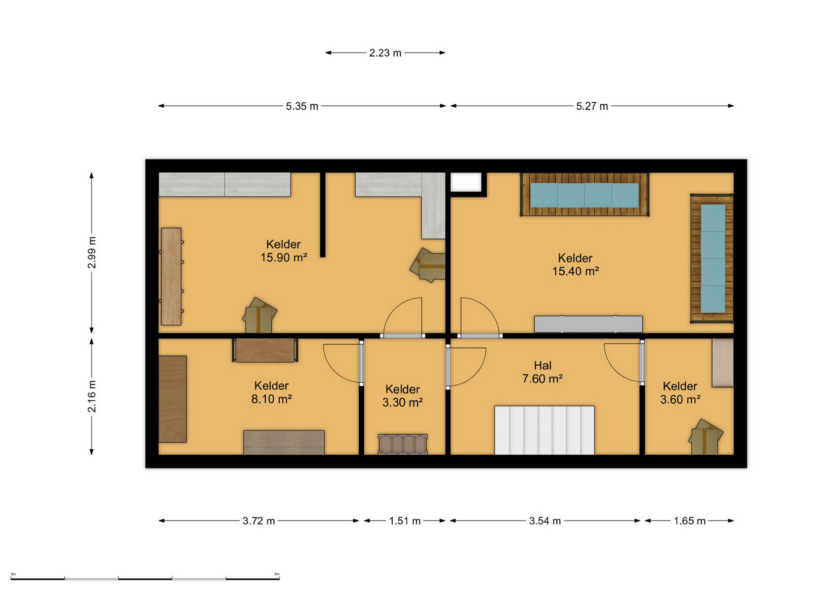 De kelder biedt extra opslagmogelijkheden en kan eveneens dienstdoen als voorraadruimte of technische berging.