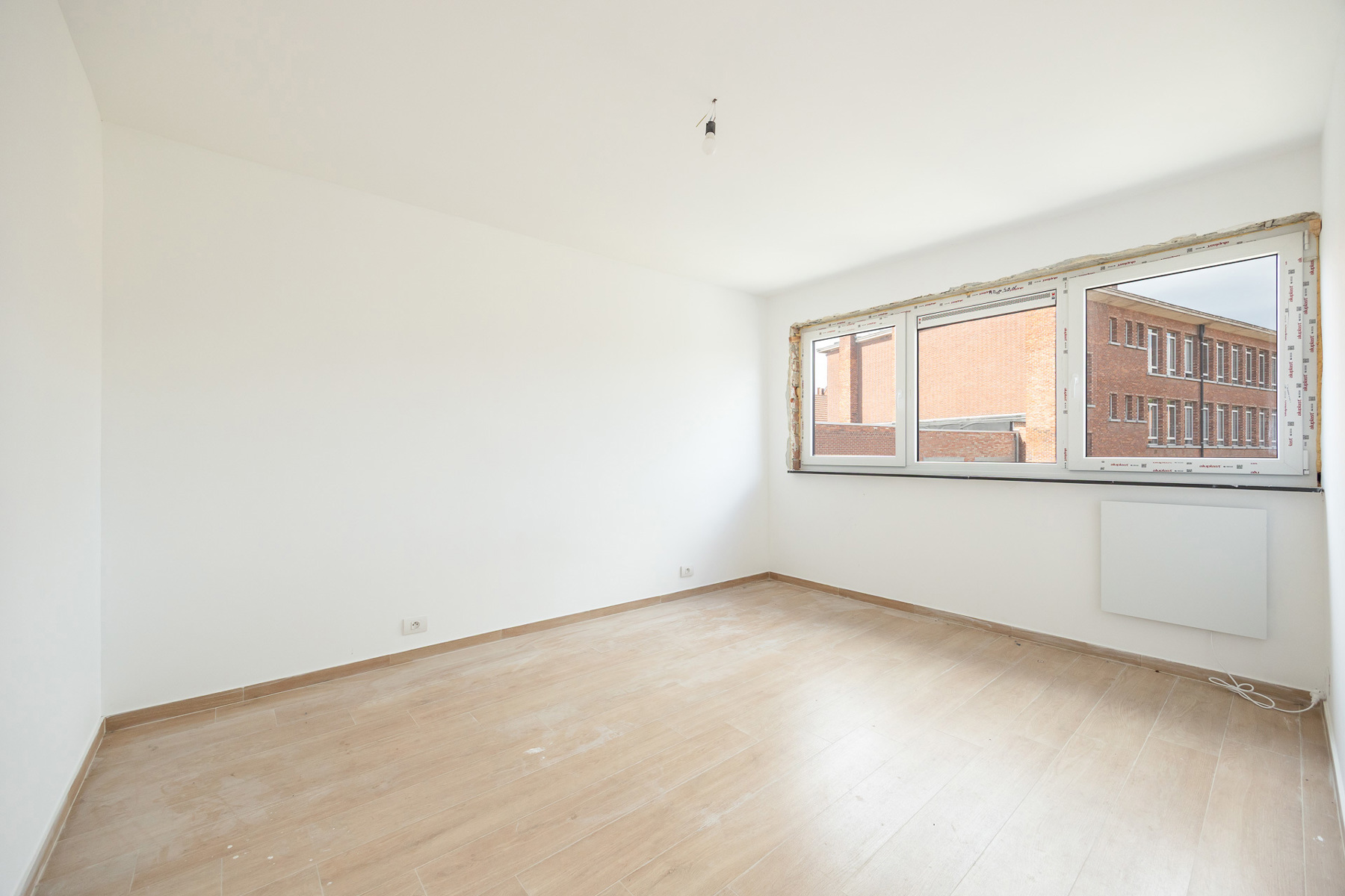 - Twee slaapkamers, waarvan één met dressing, en een badkamer met douche, lavabo en toilet. Achteraan bevindt zich een compact balkon (2e verdieping).