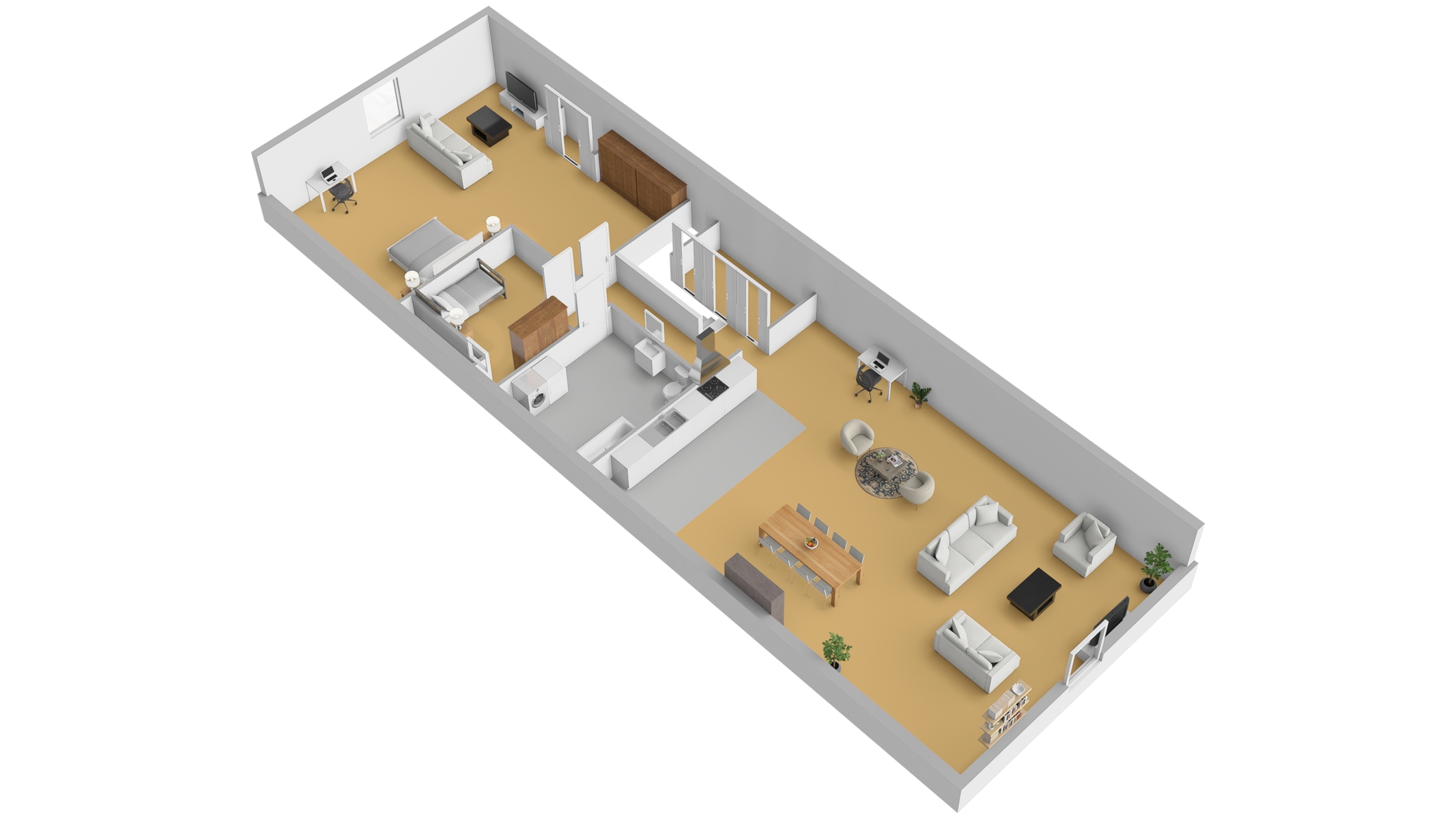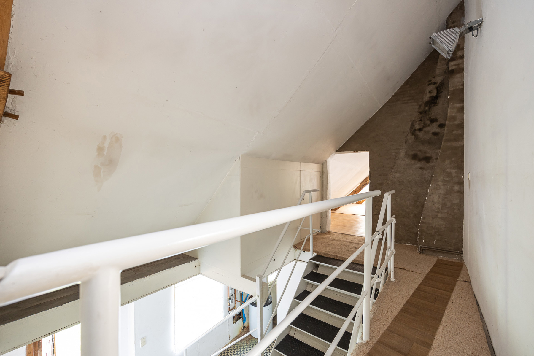 - Het dakappartement omvat gelijkvloers een ruime privatieve inkomhal met berging en trap naar de verdieping, een ruime leefruimte met open keuken, twee ruime slaapkamers en een badkamer. (EPC 371 kWh/m² - D)